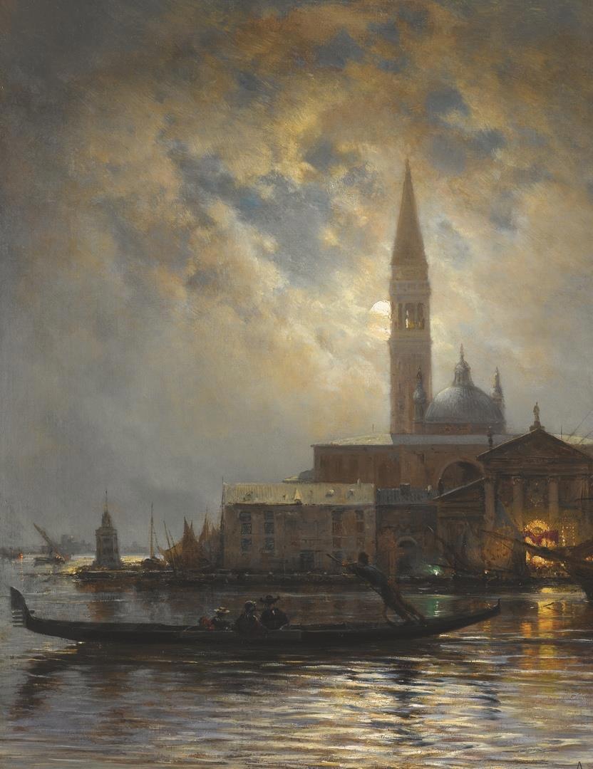 Написана она в тёплое время года (зимой как-то не очень в гондолах по ночам кататься), да и луна тучками прикрыта. Но вот общая атмосфера, игра света, таинственность... Очень это всё напомнило мне эпилог моих «Три "Л"», хотя временной промежуток между событиями картины и книги века, как я понимаю, два с половиной.