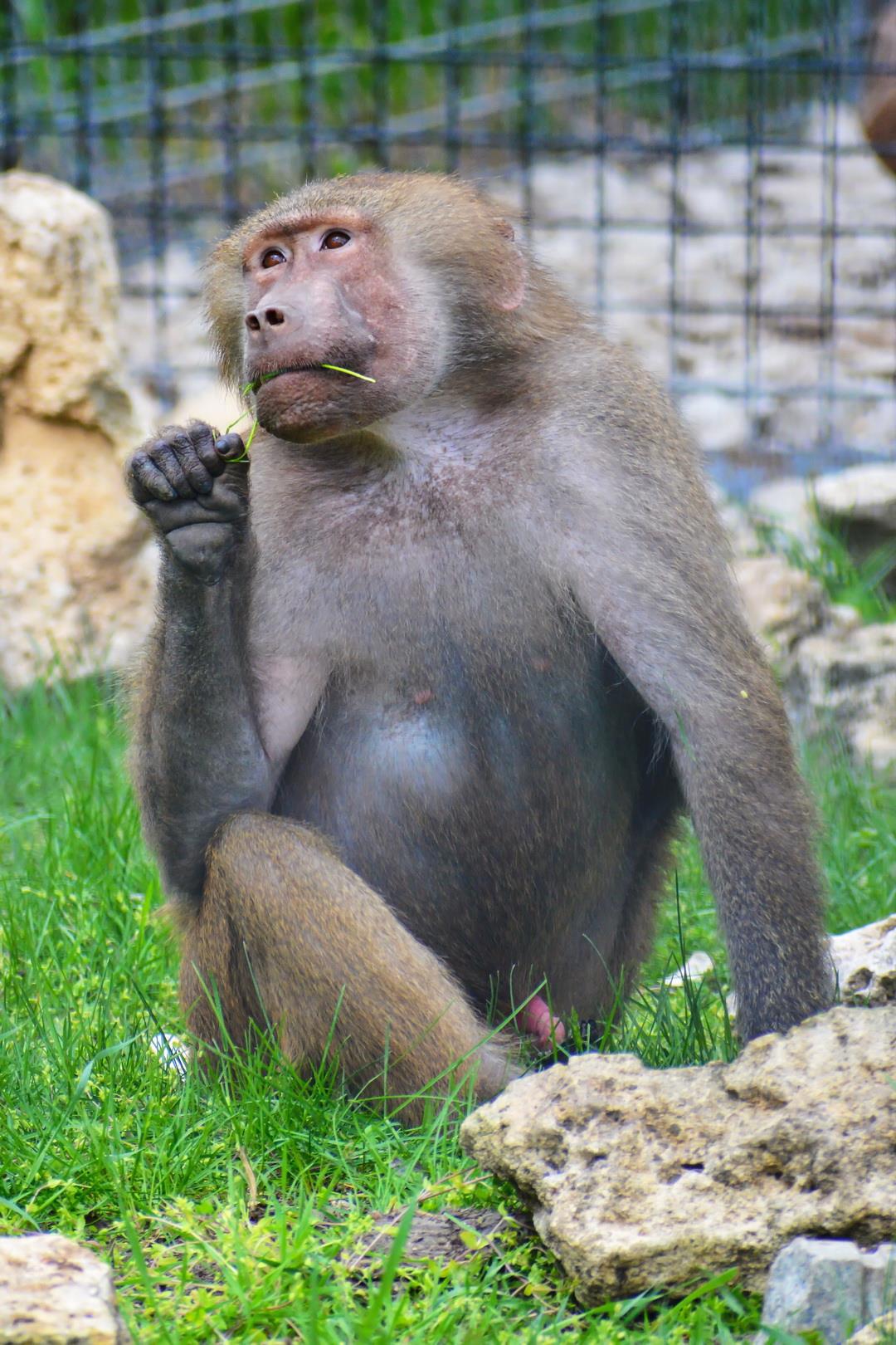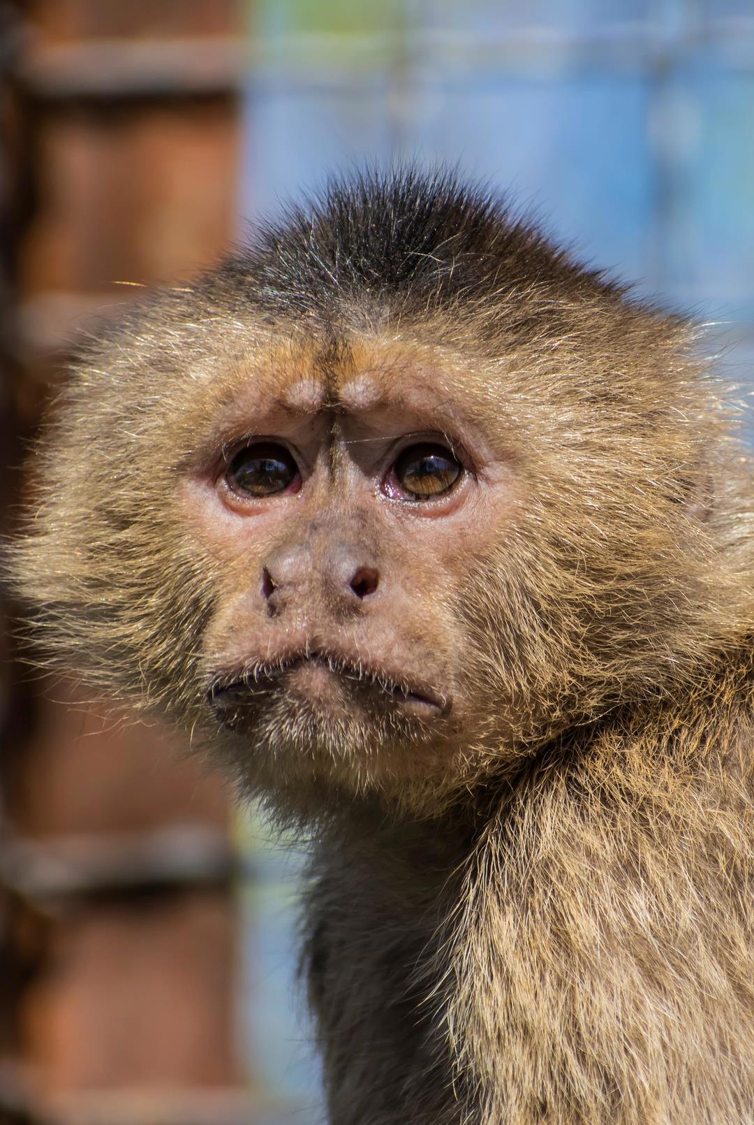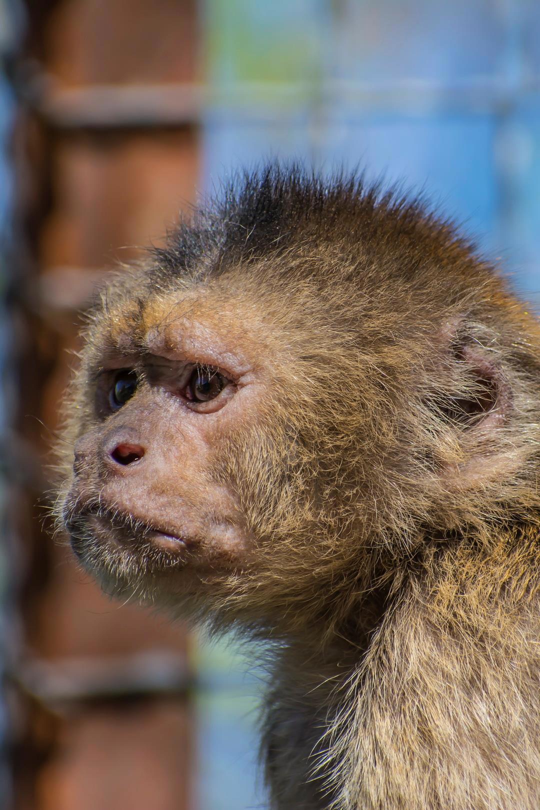 Итак. После того как мы посмотрели диких кошек, жирафов и других крупных зверей, мы выходим к вольерам с обезьянами. Их не очень много в парке. Но они есть. Вот портрет одной из них.