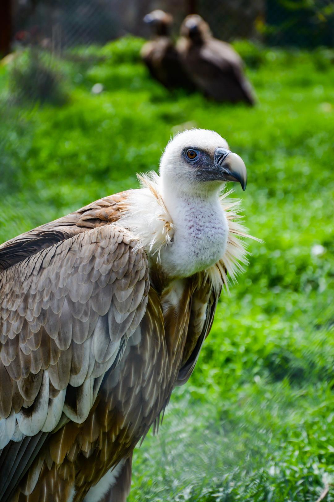 Белоголовые грифы сидят в вольерах и смотрят на проходящих мимо людей явно с гастрономической точки зрения. Красавцы, но уж больно грозные и внушающие некоторый трепет.