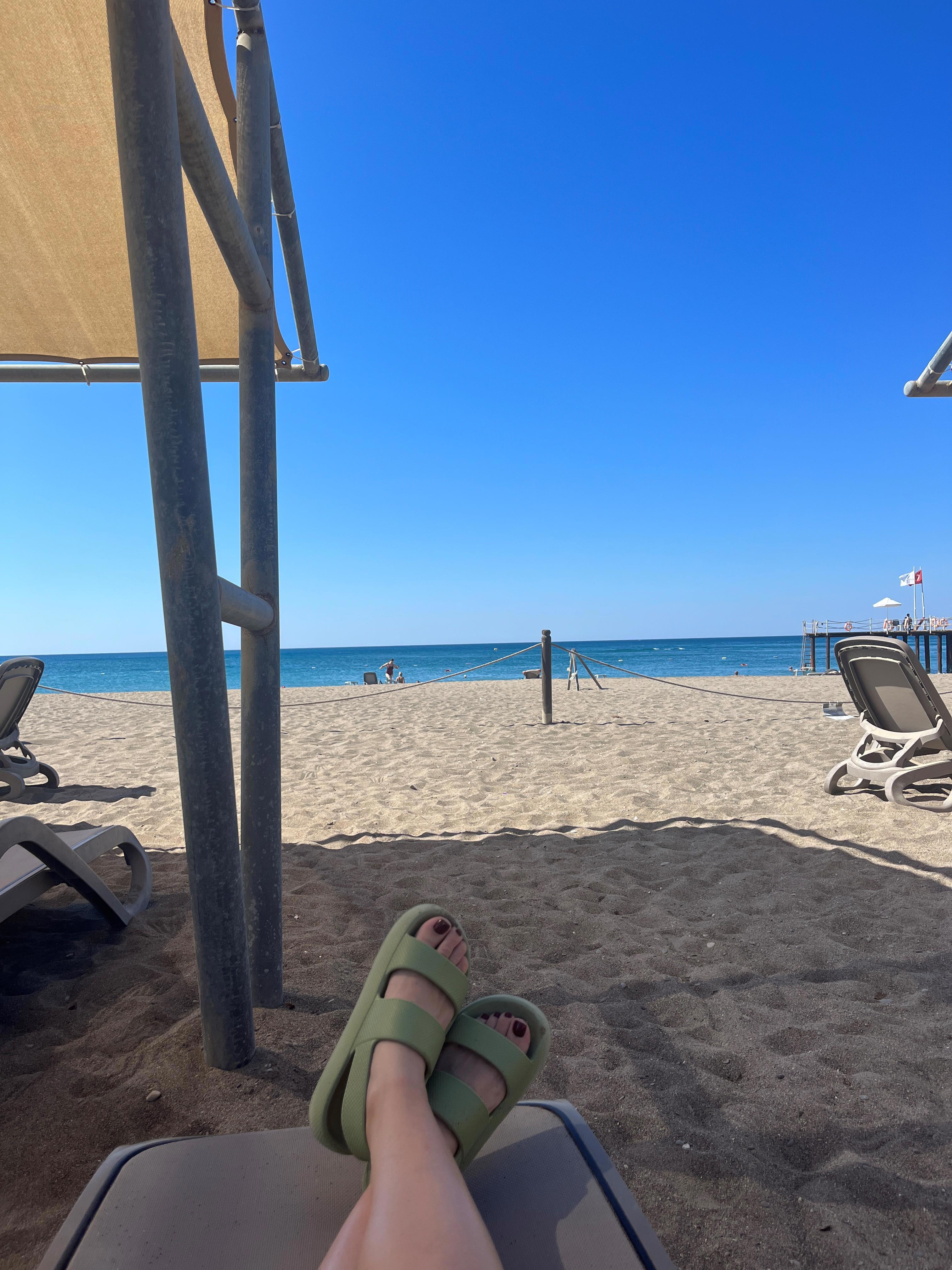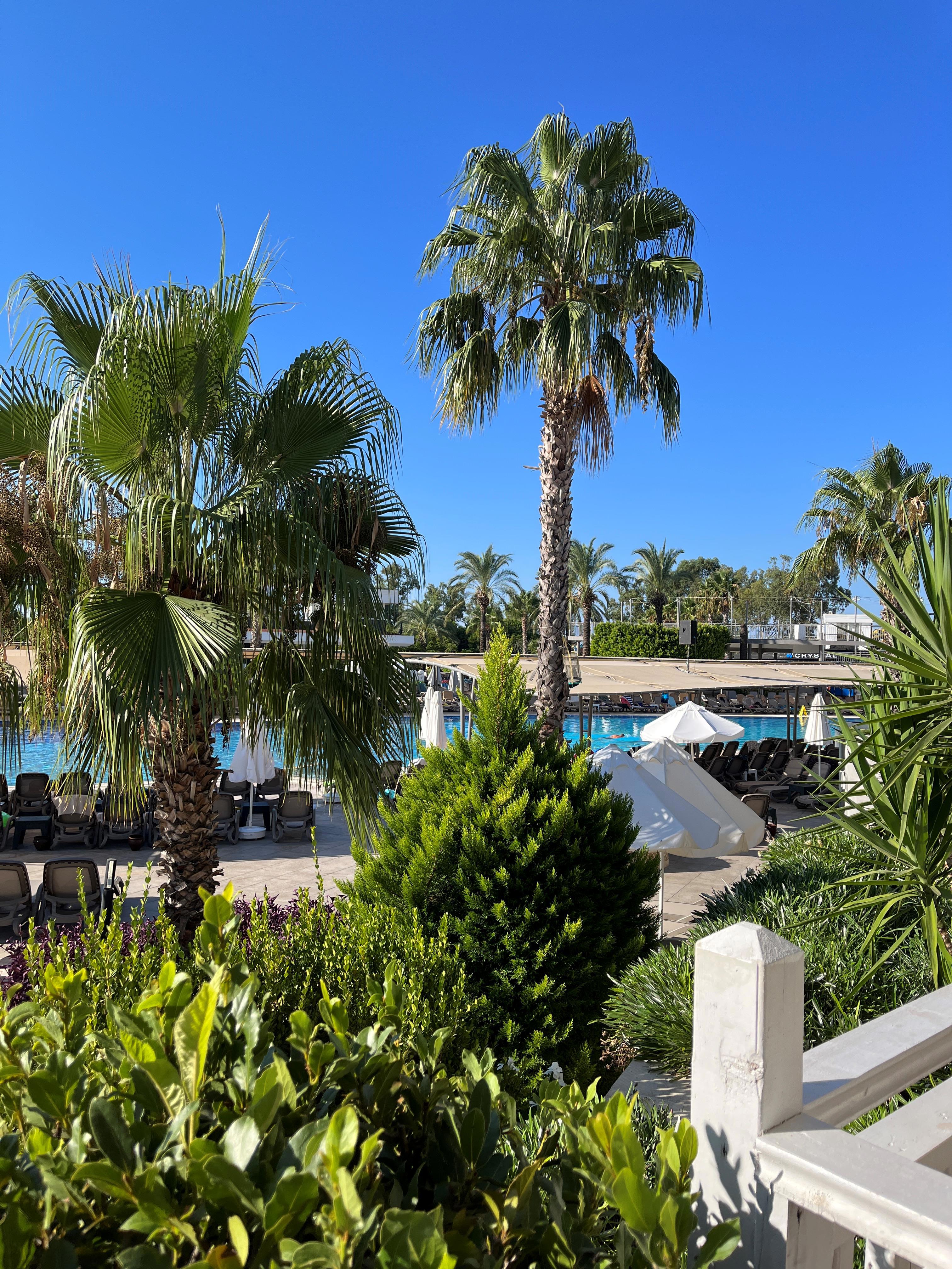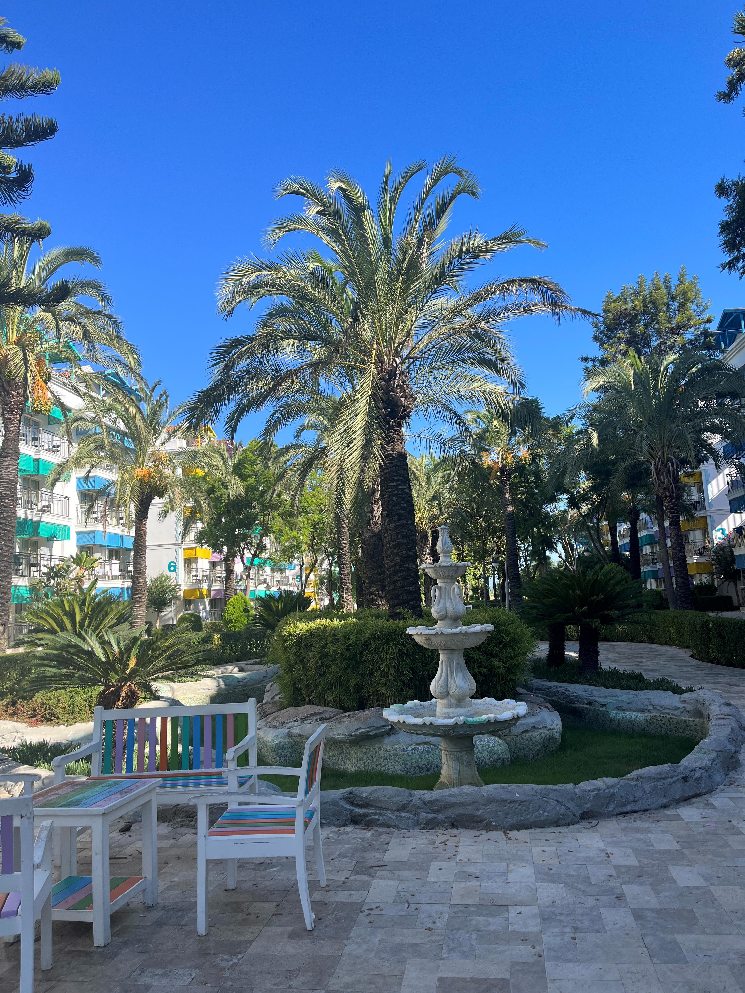 За час мы доехали от аэропорта до отеля, с которым очень повезло: большая зеленая территория, песчаный красивый пляж и шведский стол 24/7.
