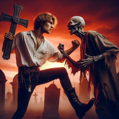 А, во-вторых, вчера ближе к вечеру появилась ещё одна – уже третья по счёту! – иллюстрация к моему роману "Купеческий сын и живые мертвецы", созданная для конкурса ART-прорыв 2024. Её в очень ярком и энергичном стиле выполнил vizard, за что ему большое-большое спасибо!
