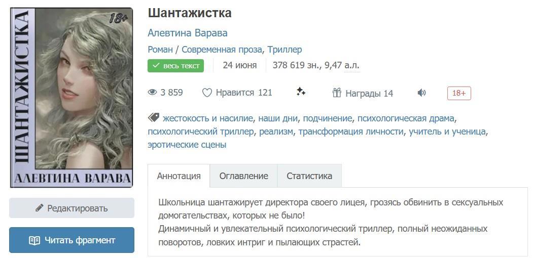 – Вопрос может коснуться школы. – Голос из-за её положения был сдавленный и приглушённый, натужный. – Александр Николаевич, переведите мне деньги. Или я закричу.