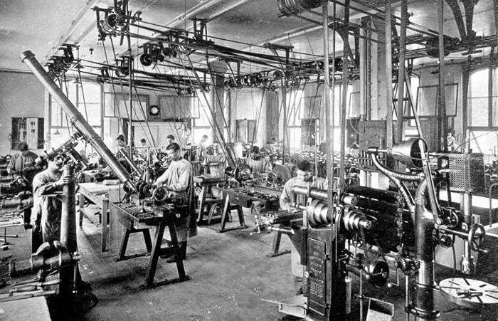 Видите кучу ремней, валы под потолком? (Кстати, не скажу какой это год.) Это всё можно было заменить кучей электромоторов, но нет же. Время не пришло.