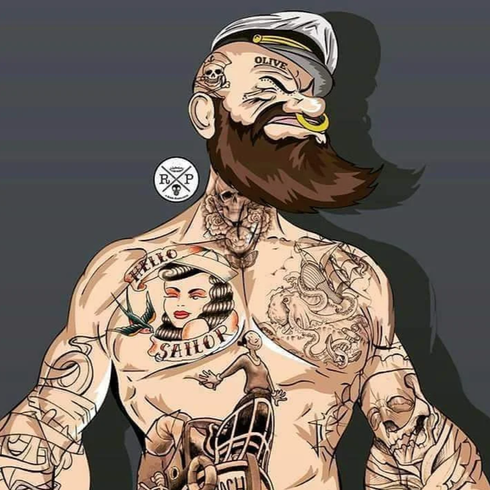 Говорят именно Барчетт первым начал колоть на тела изображения Моряка Попая