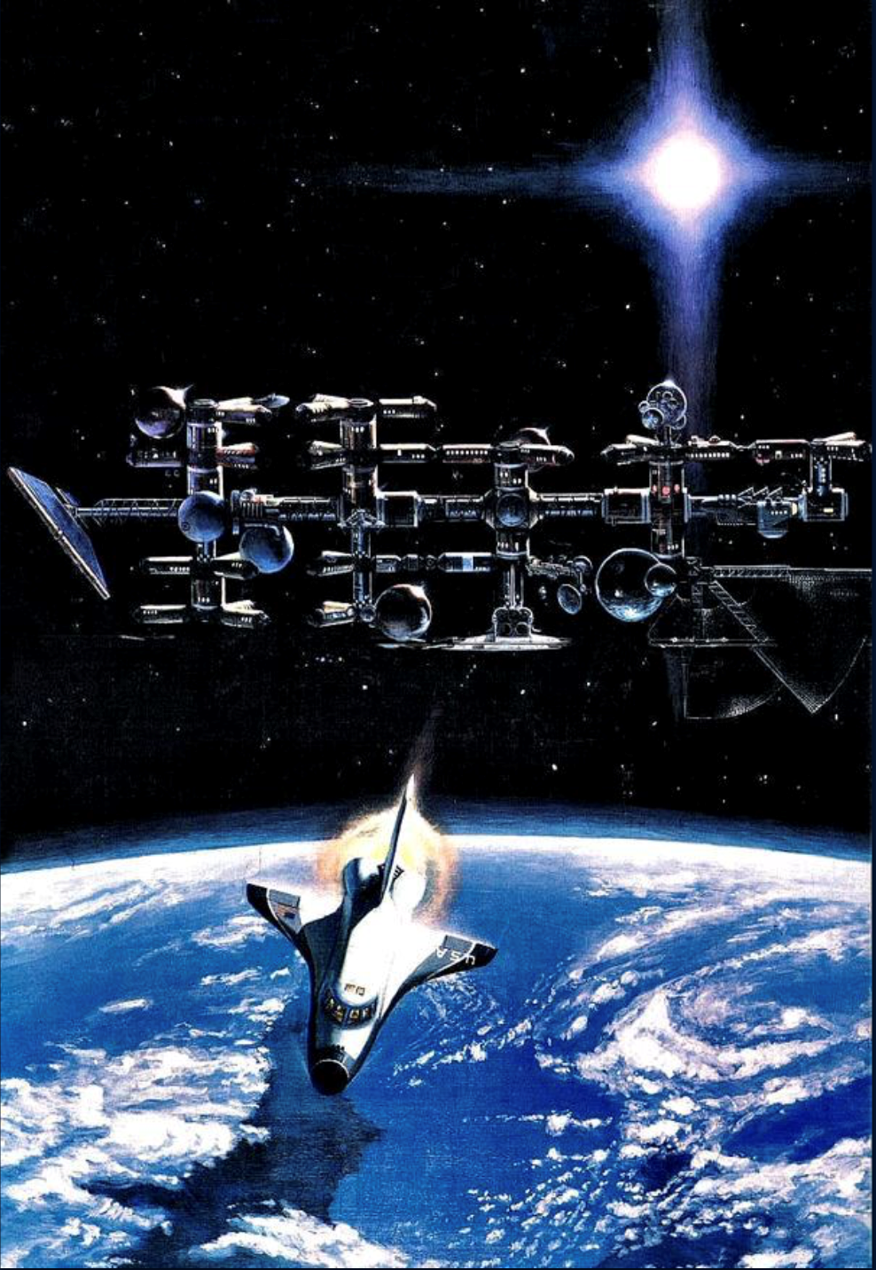 Название у иллюстрации "Космическая станция 1980-х", что отражает будущую перспективу. Как известно, такие большие проекты космических аппаратов удостоились чести быть построенными - это орбитальные станции "Мир" и "МКС".