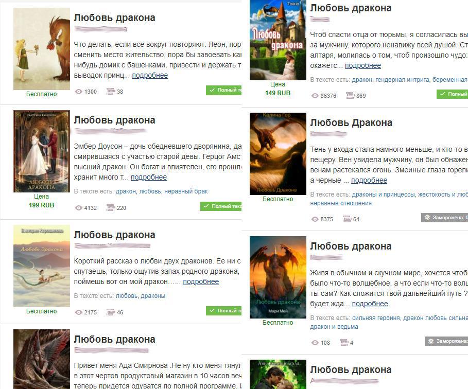 Но проблема не в том, что их четыре или восемь. Это проблема восьми авторов, которые даже не удосужились забить в поиске рабочее название, чтобы не повторяться. Главная беда заголовка в том, что он просто кричит: Эта книга – не уникальная история! Это массовый проходняк, каких десятки и сотни! В ней нет ничего самобытного, интересного, неповторимого. Просто очередная история любви протагонистки и дракона.