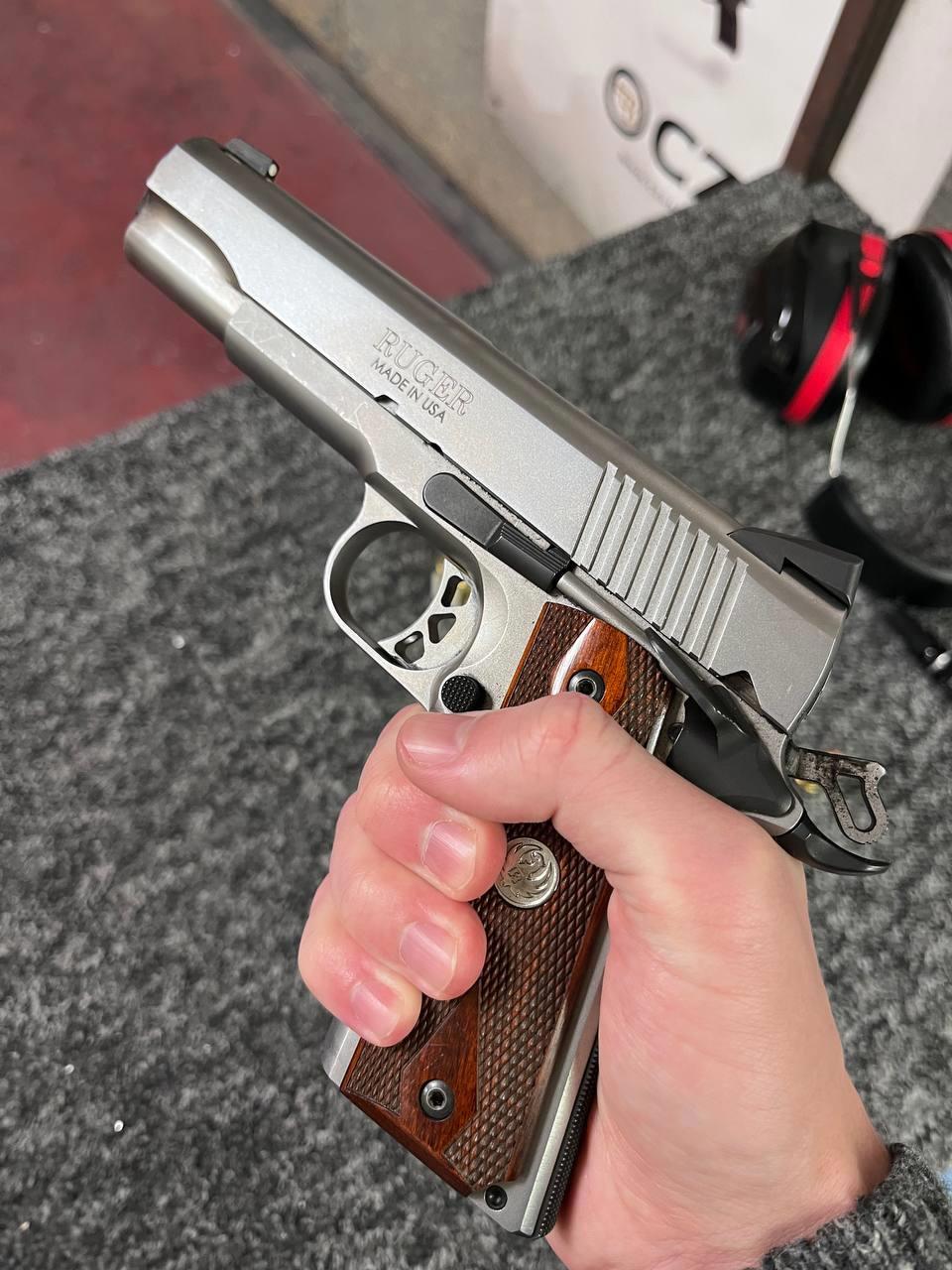 У кольта отсутствовала выемка под большой палец и держать было не очень удобно. Так же неудобен предохранитель который в ручке.