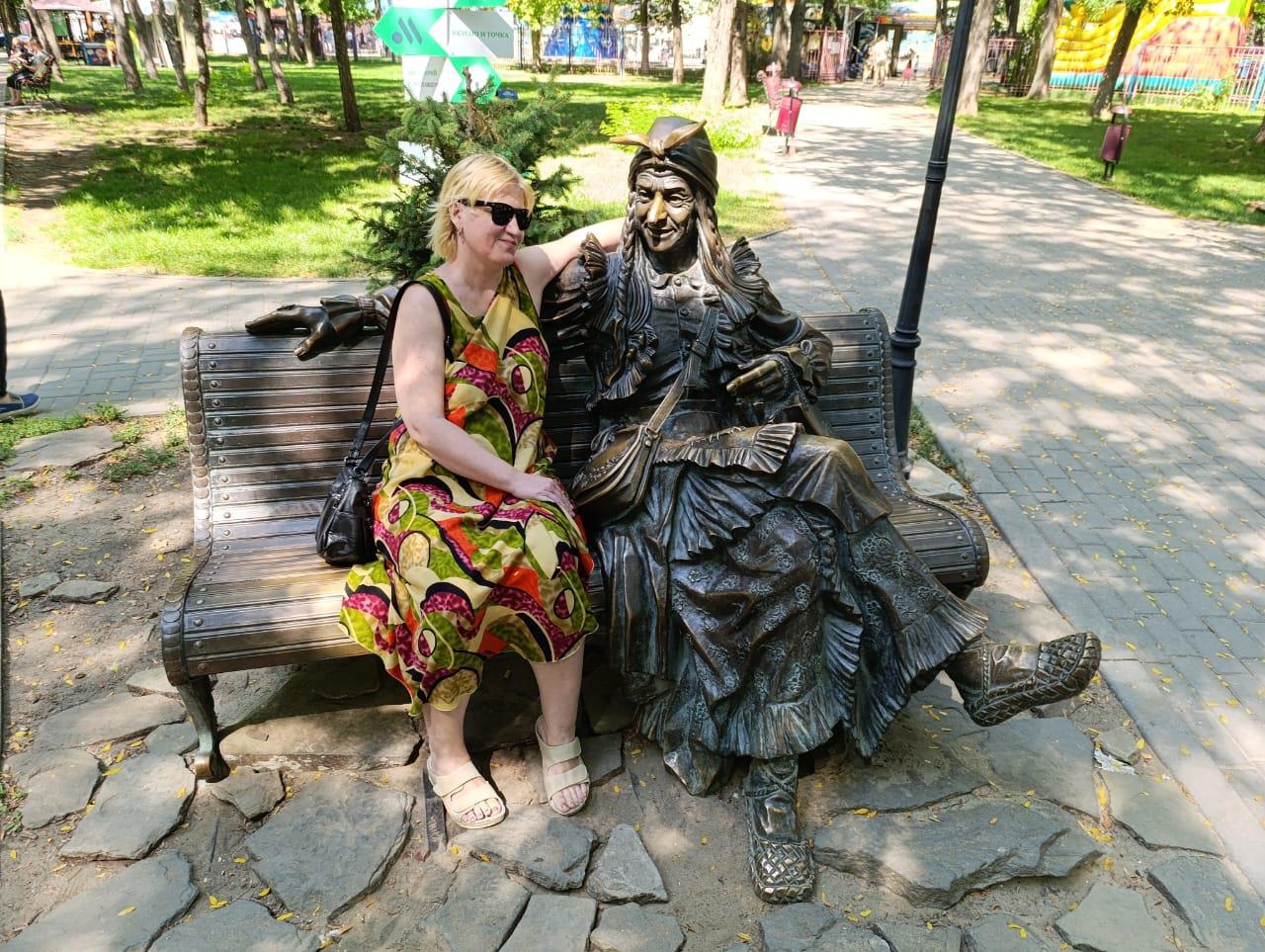 Вот такую очаровательную Йожку увидела в парке Революции в Ростове-на-Дону. Она там не скучает: к ней постоянно подсаживаются))