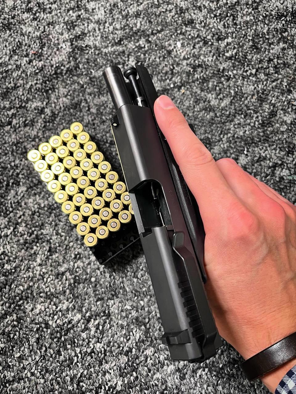 Ещё интересно, что у него такие допуски что в прорезь затворной рамы, видно пулю.