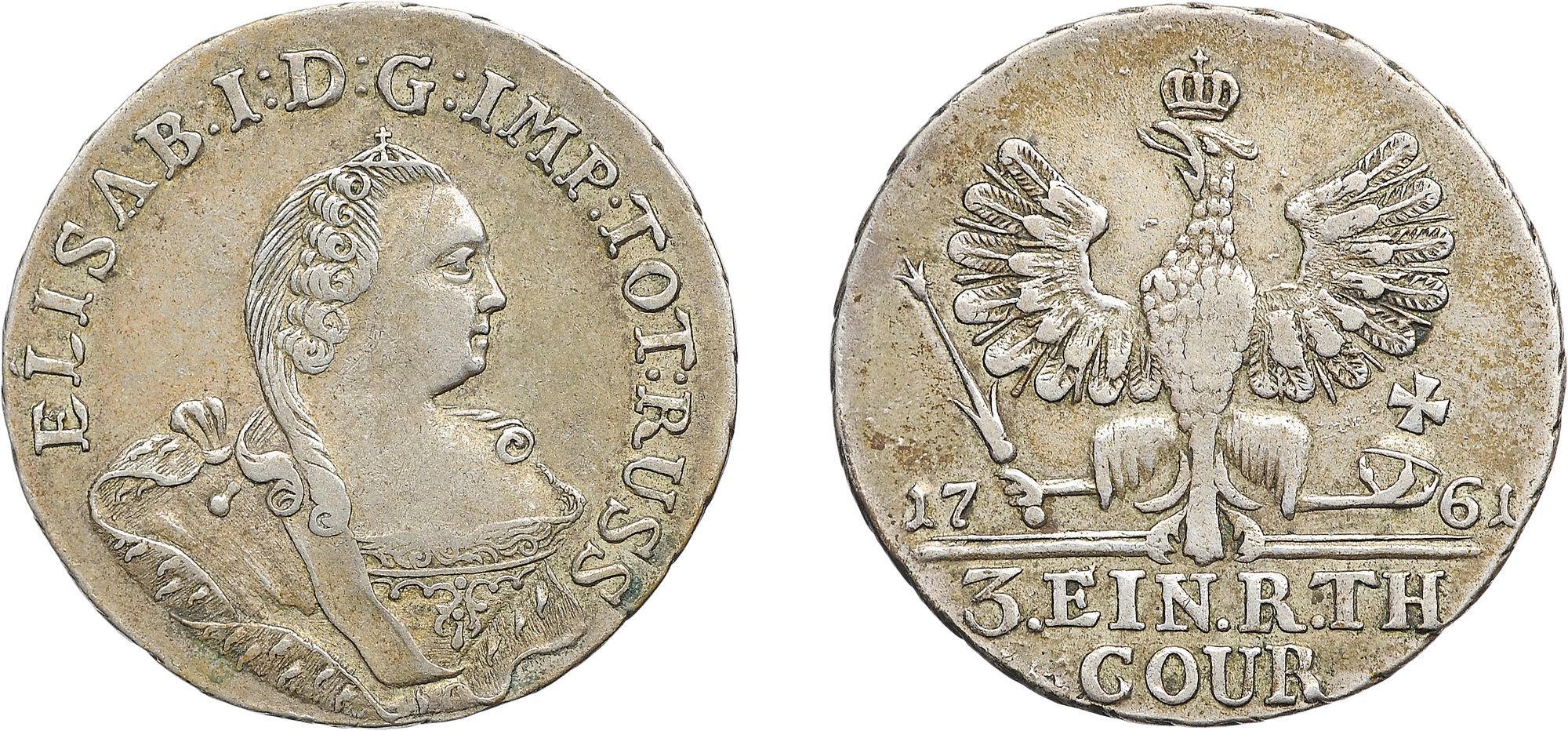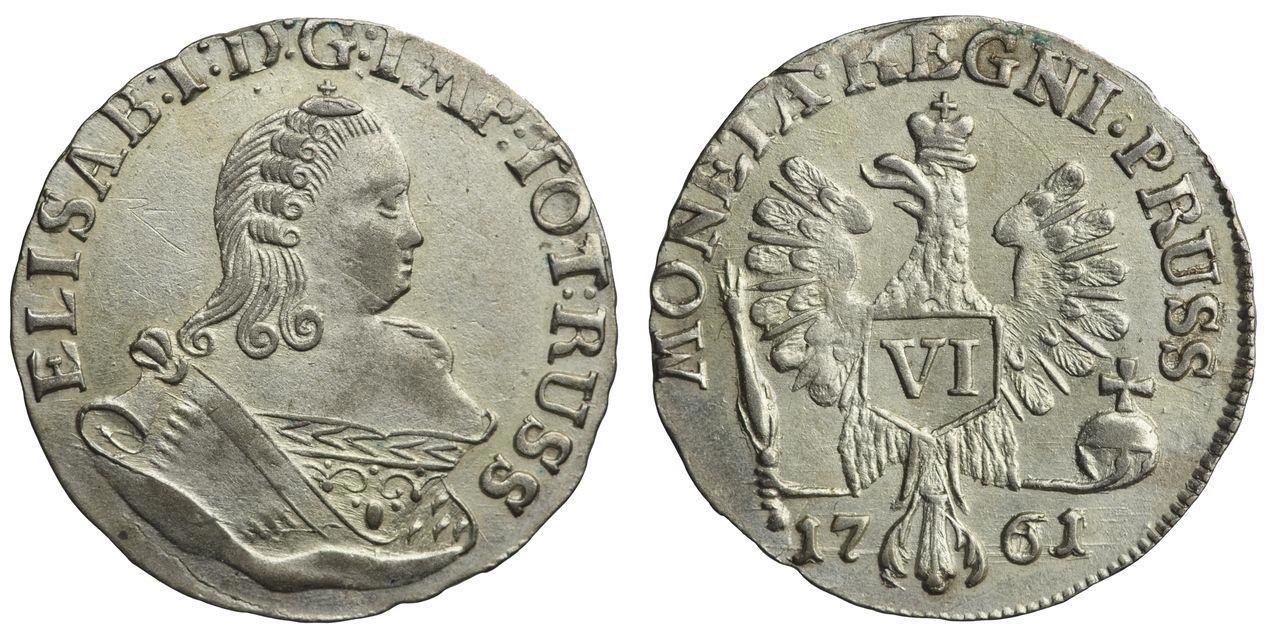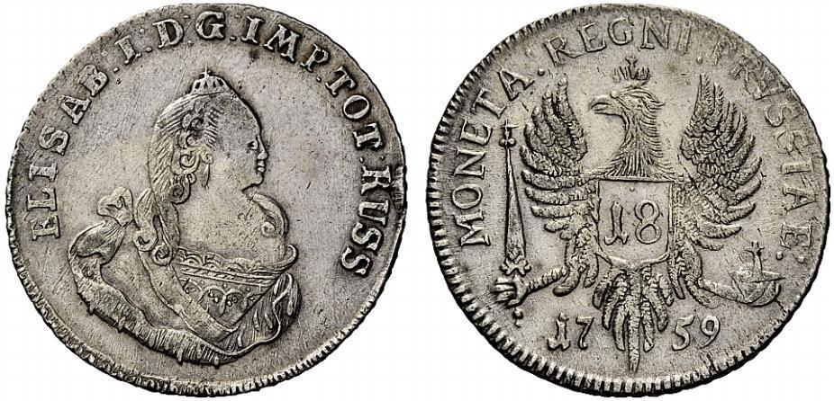 28 мая 1759 года был издан Указ о выпуске в обращение на территории Восточной Пруссии средних и мелких серебряных денег с пониженной пробой серебра.