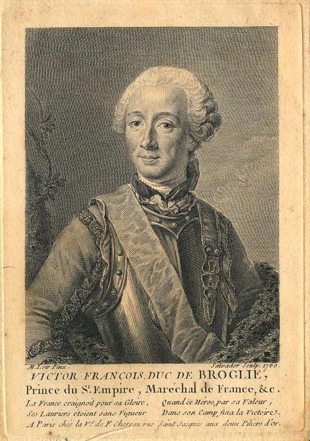 Отважные люди есть и среди представителей других национальностей. Вот например французский маршал XVIII века Виктор-Франсуа де Брольи был не только талантливым военачальником, но и человеком исключительной храбрости, что иногда доставляло серьёзные неприятности его окружению. Он наплевательски относился к любой опасности, не кланялся вражеским ружейным залпам и огню артиллерии. Стоять рядом с ним и ожидать что вот-вот сейчас твоё тело насквозь пробьют свинцовая пуля или к чертям ядром оторвёт голову не самое приятное занятие. Наверное именно поэтому адъютанты у де Брольи менялись как перчатки.