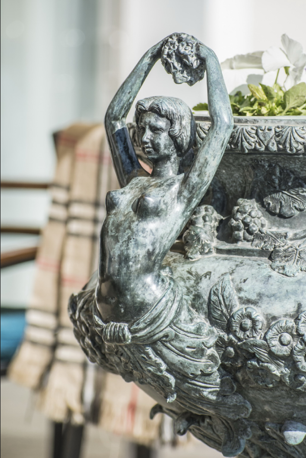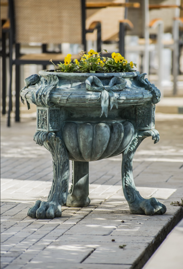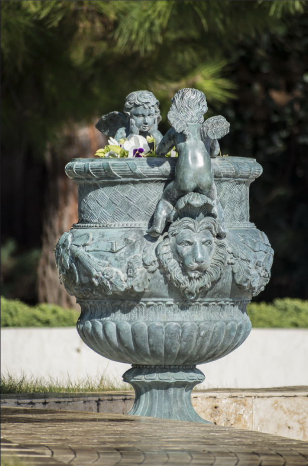 На каждом повороте, возле скамеек, зданий, пляжа вы увидите бронзовые вазоны с цветами, которые оформлены в стиле древнегреческих и древнеримских ваз и треножников.