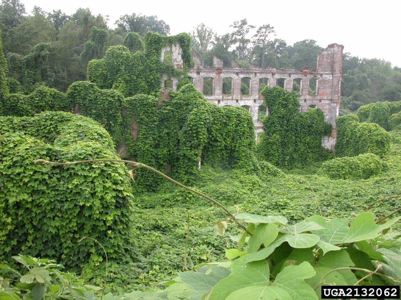 А саму лиану (она же Пуэрария дольчая) ещё называют «зелёной чумой». Эффектно, но крайне вредно, да и ещё и смертоносно: кудзу просто вытесняет прочую флору местности, да и растёт быстро — 30 см. в день! А избавиться от него очень сложно: корни кудзу уходят на глубину до 15 метров!