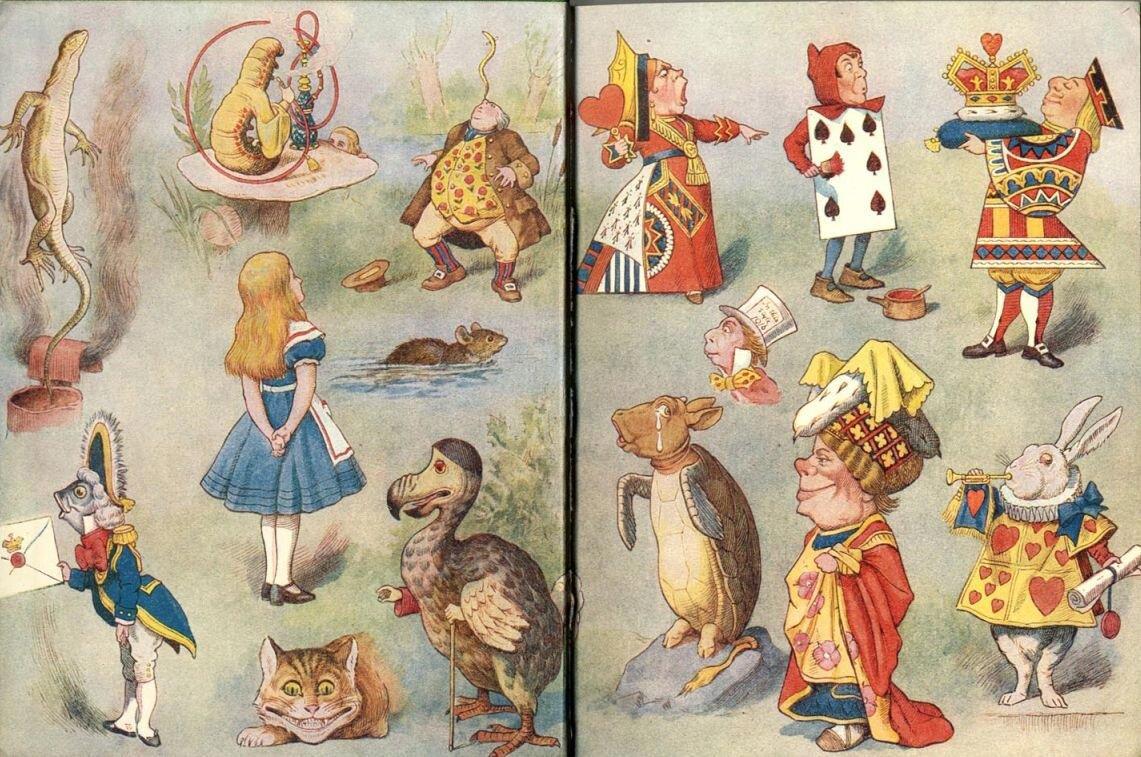 Через семь лет Кэрролл напишет продолжение – «Алису в Зазеркалье», где путешествие Алисы продолжится в не менее сюрреалистичном мире. Мы будем использовать примеры из обеих книг, т.к. Кэрролл выстраивает их по схожему принципу.