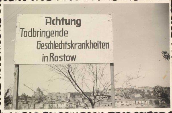 Автор: Николай БергНе знаю почему - но из сотен фотографий немецких транспарантов, предупреждающих об опасности - такой был только перед городом Ростов!