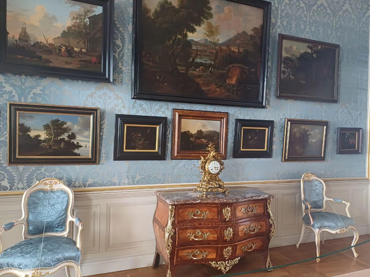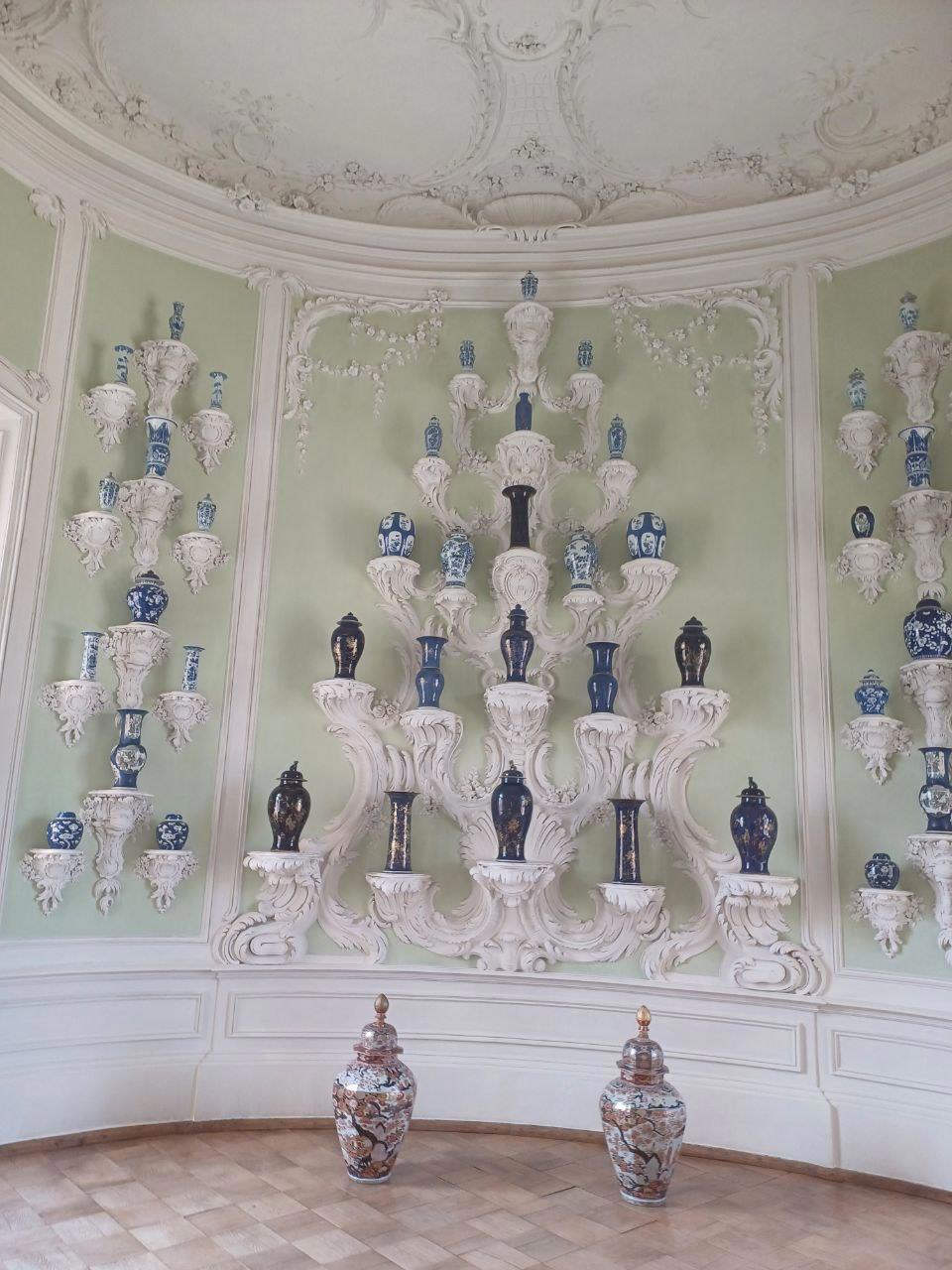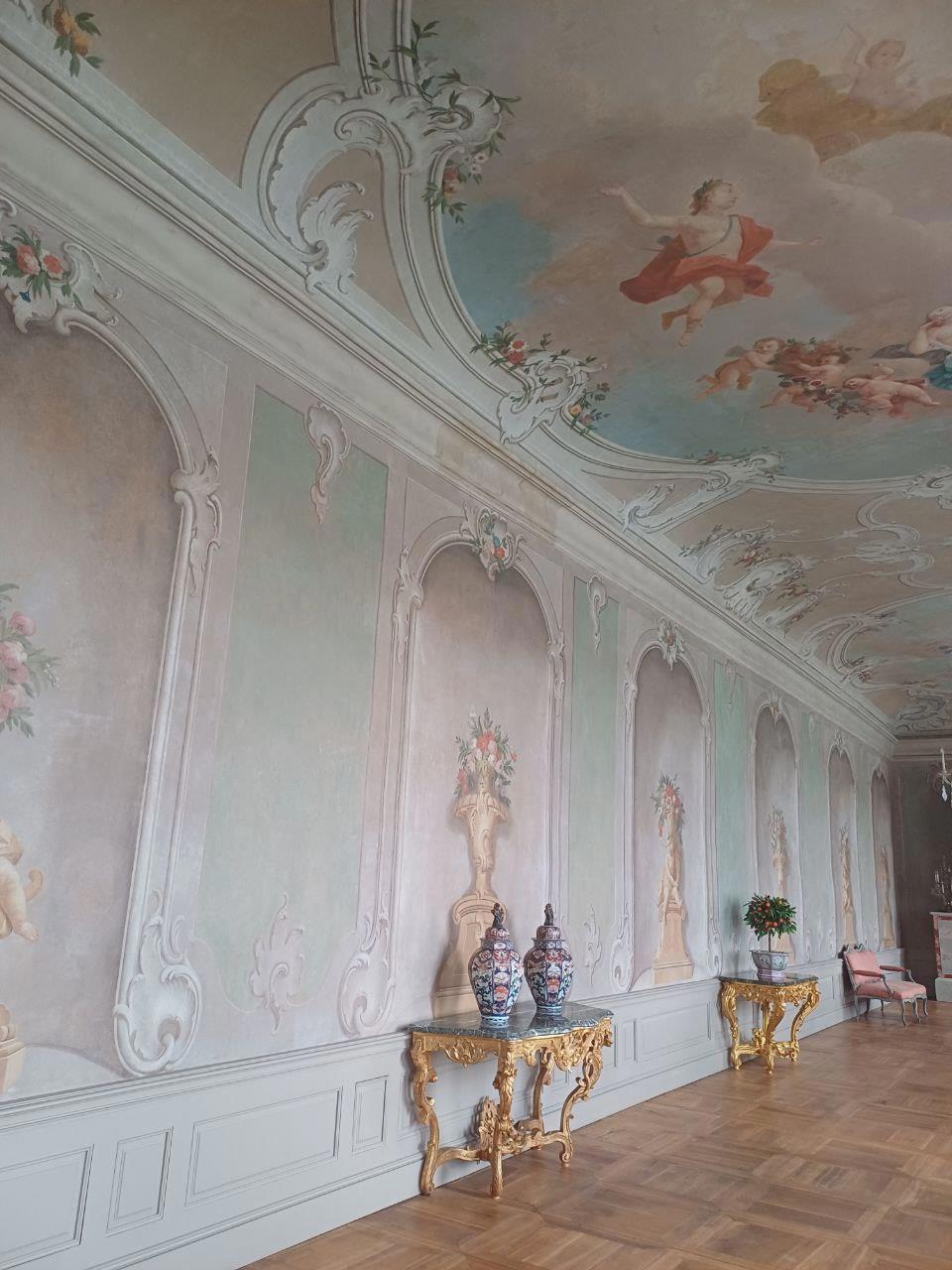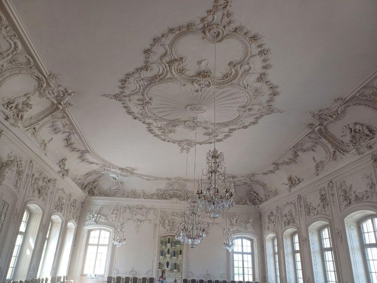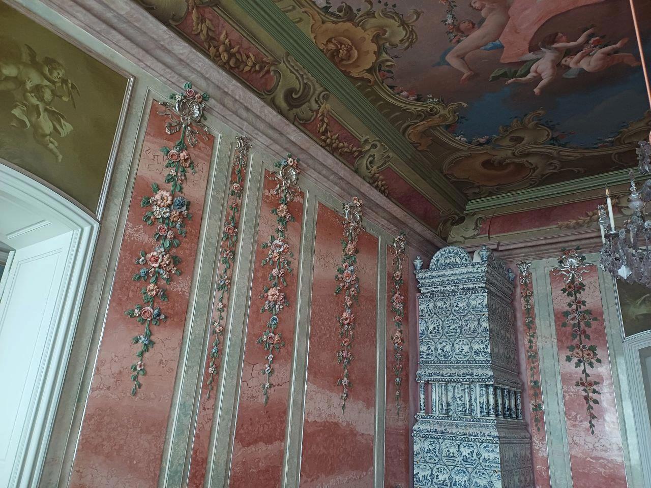 Большая часть интерьеров была создана с 1765 по 1768 год, когда во дворце работали берлинский скульптор Иоганн Михаэль Граф и итальянские живописцы из Петербурга – Франческо Мартини и Карло Цукки.
