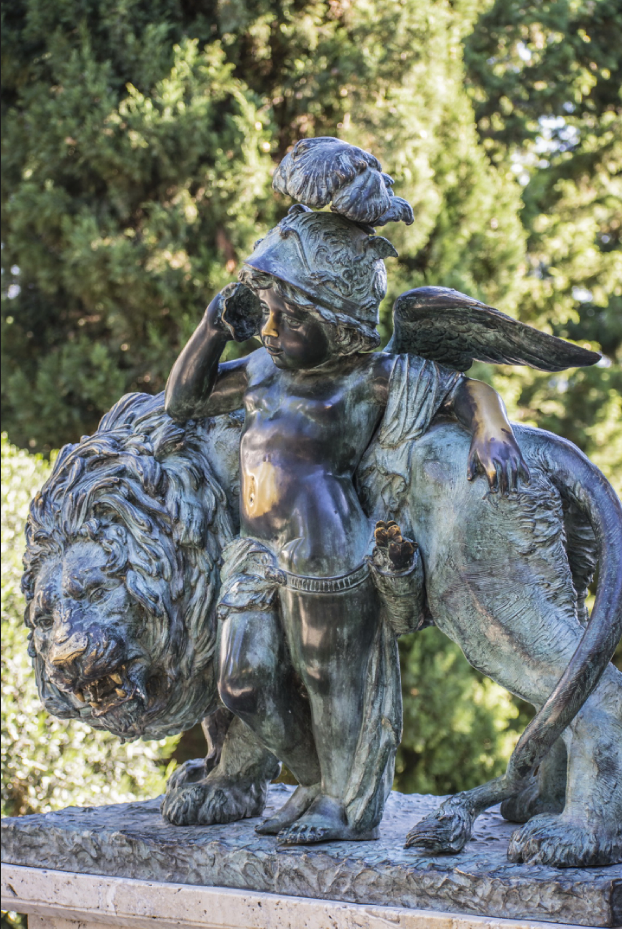 Например, внезапно вы обнаружите облокотившегося на льва Амура в шлеме беседующего с кем-то из Олимпийцев по раковине. Нет, понятно, что он слушает шум моря, но сегодняшние реалии позволяют пофантазировать.