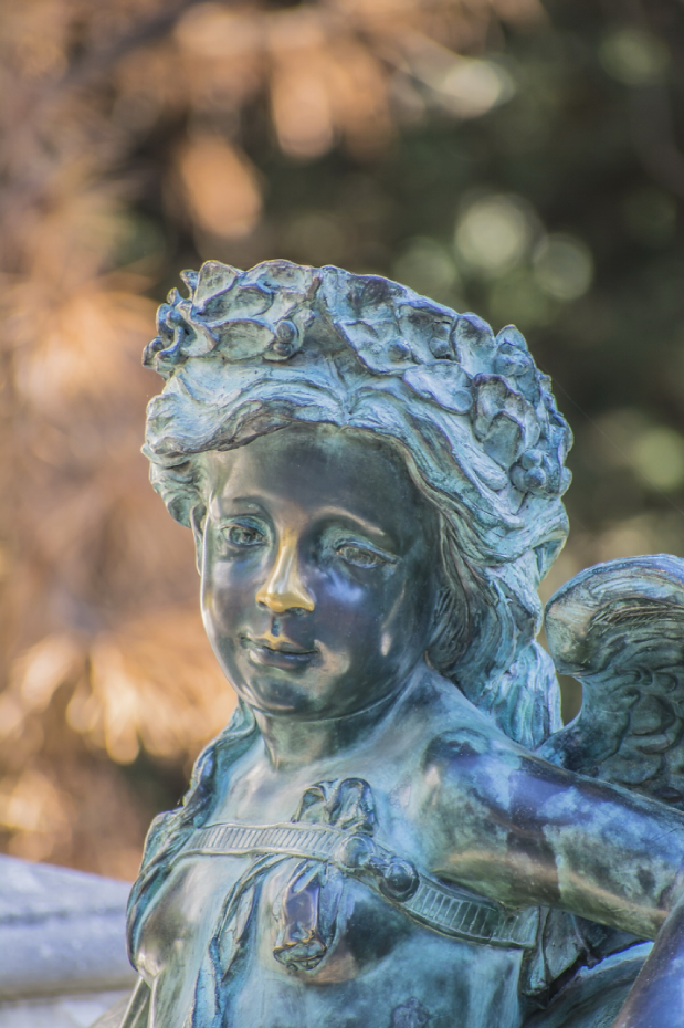 А напротив, опираясь на такого же льва, стоит маленькая очаровательная нимфа. Правда без айфона)