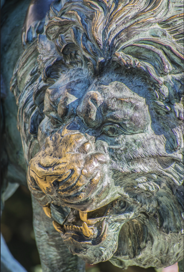 Льву не очень нравится спокойно стоять. Он намекающе рычит.