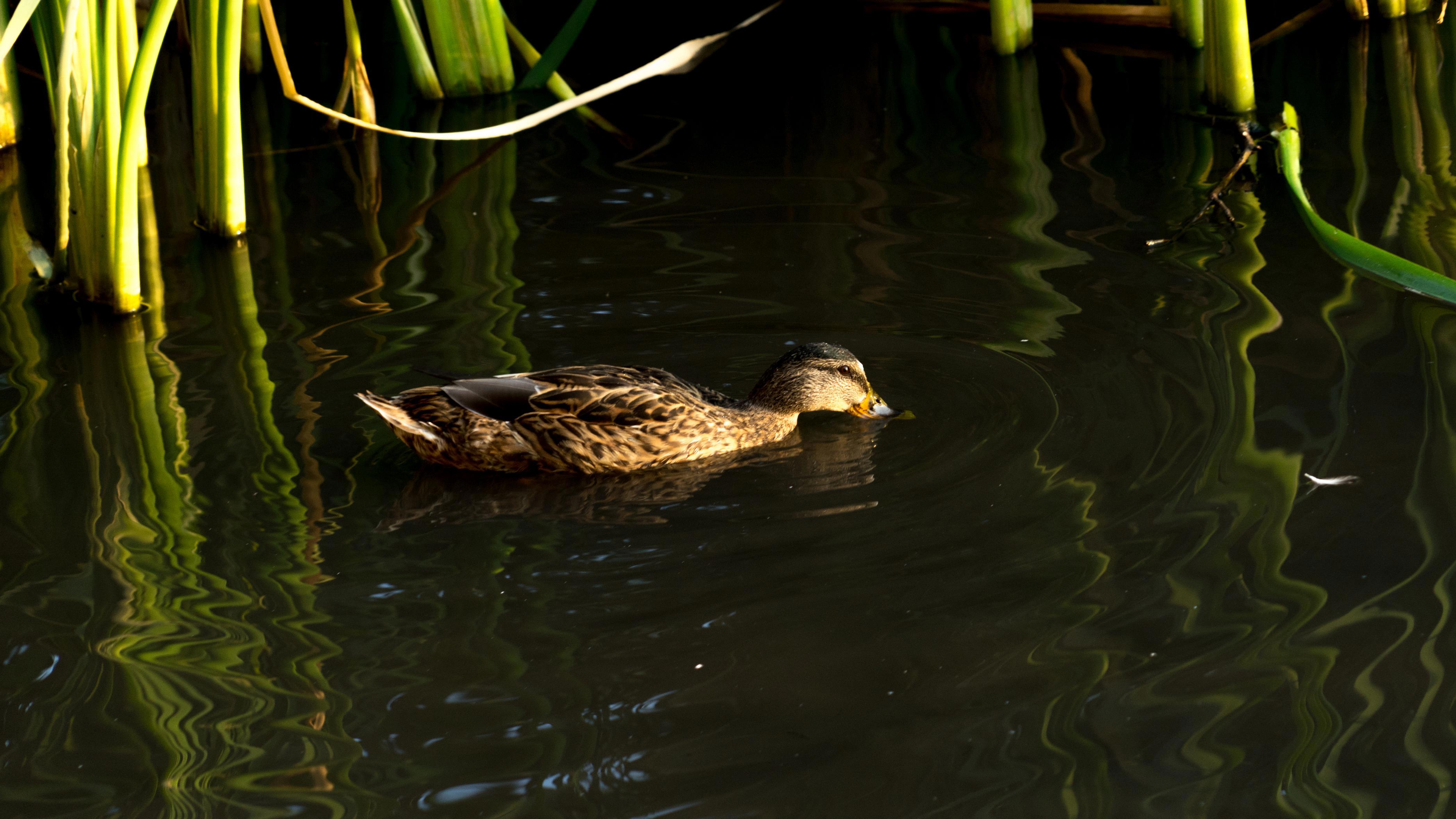 Отражения стеблей в темной воде завораживают.