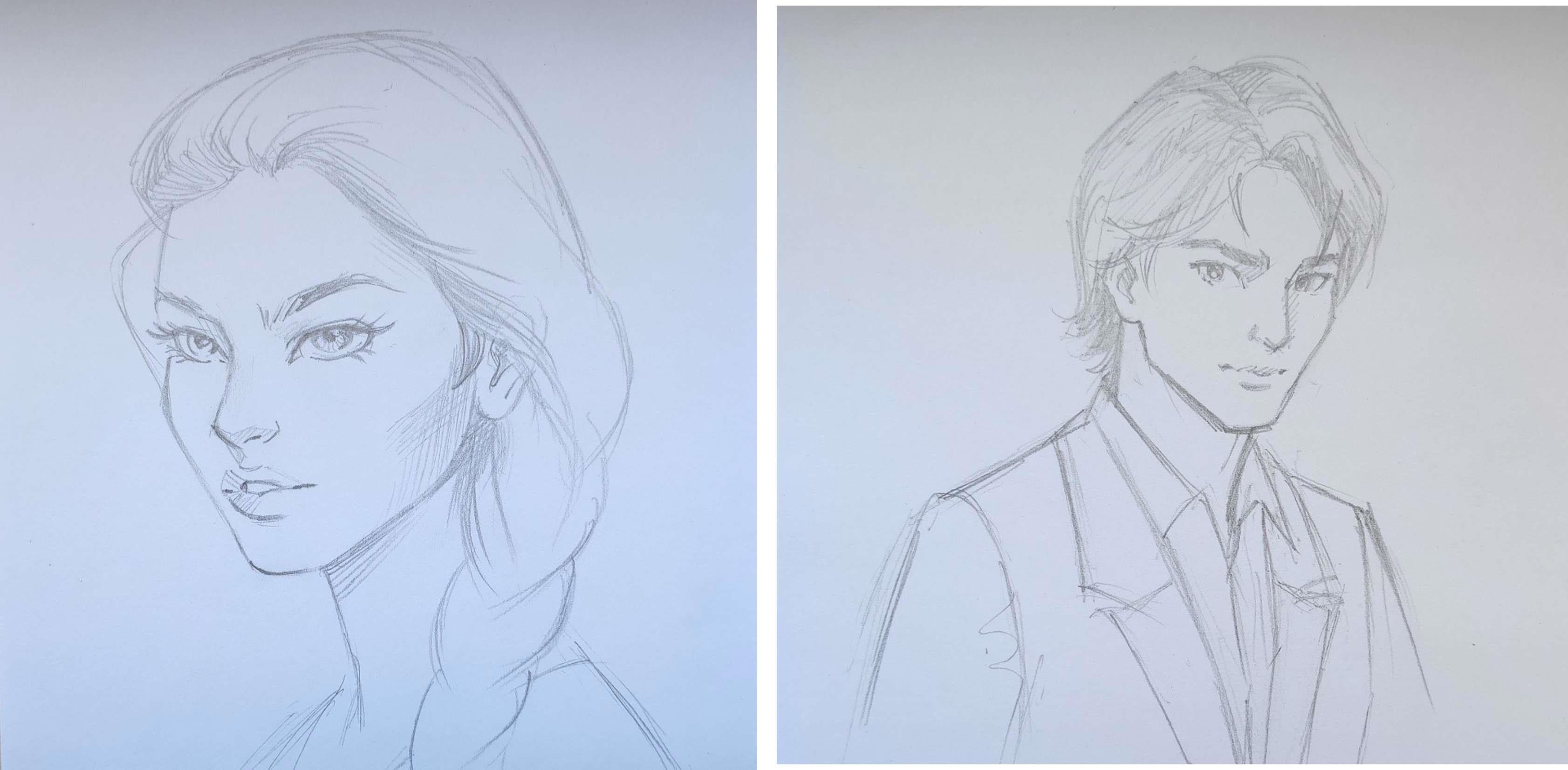Дальше я планировала дорисовать обложку для нового детектива, на которой будут вот эти ребята: