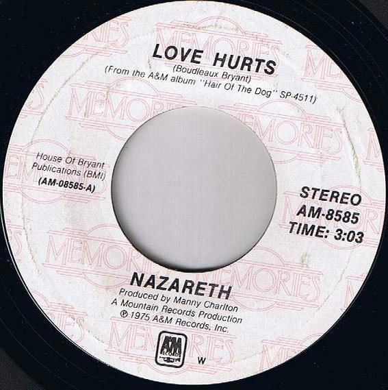 Сразу четыре интересных варианта песни появились в 1975 году. Особо стоит отметить запись песни, которую в духе рок-баллады сделала группа Nazareth. Вне всяких сомнений, это наиболее известная версия “Love Hurts”, затмившая все предыдущие и ставшая образцом для многих последующих.