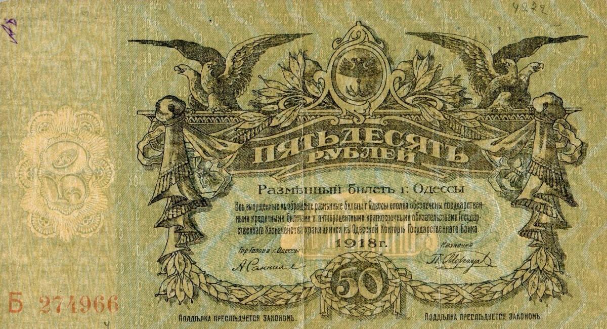 Как и многие другие регионы России, в годы гражданской войны Одесса испытывала серьезный дефицит наличных денег. Ситуация усугублялась тем, что от основных эмиссионных центров, что красных, что белых, город постоянно был отрезан - не фронтом, так морем.