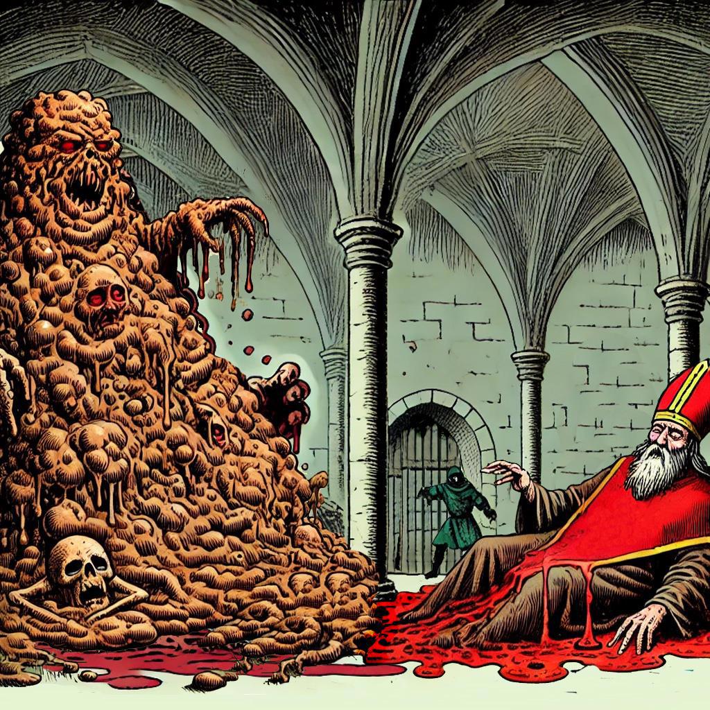 Глава 37. Печальный конец епископа Фальвена (наместник Лантен на заднем плане ломится в закрытые двери)