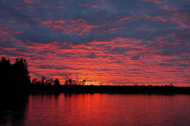 Это закат в Карелии. В Москве тоже порой случаются красивые закаты, но чтобы такое... И длилось часа полтора, никак не меньше.