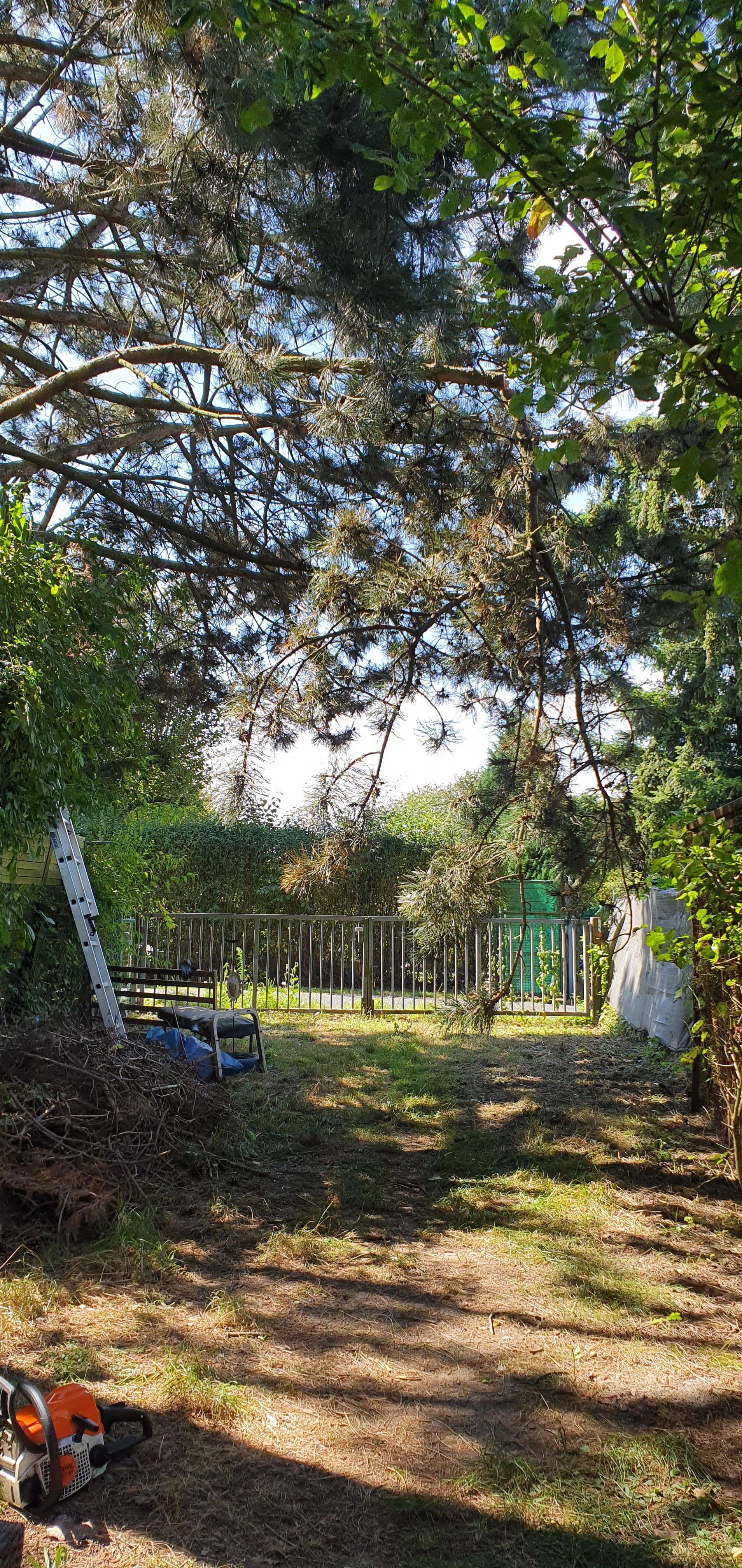 Нашёл старую косу, и скосил травку на входе. А потом, воще пошёл с пилой всё пилить, як терминатор.
