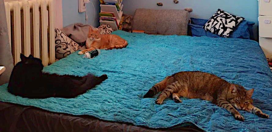 Черного зовут Рамзес, 13,5 лет, серого — Рысь, 14 лет, рыжего — Рауш, ему примерно 2 года