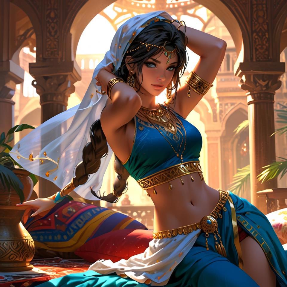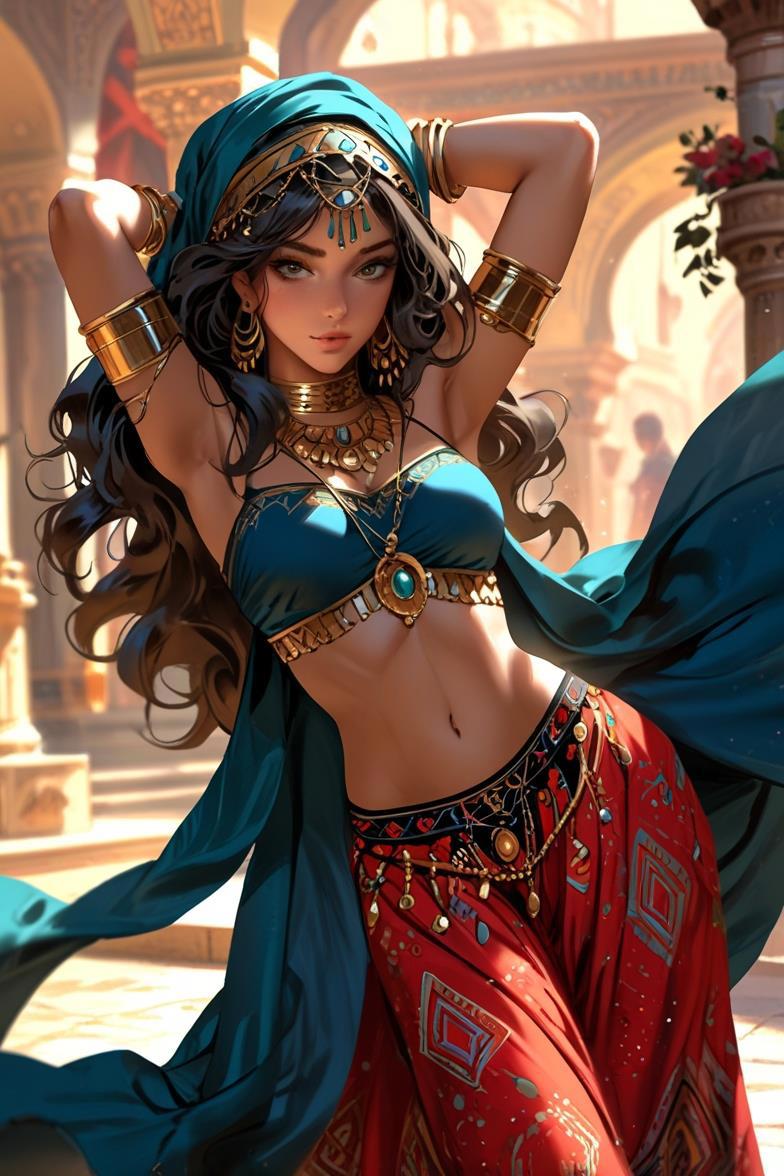 Ну что ж. Танец появился. Осталось увидеть живот. Главная проблемба Леонарды - слишком много тряпок. А как сообщают в комментах знающие люди, настоящий танец живота исполняется голой ниже пояса. То есть в одном лифе. Явно не вариант Леонарды с ее цензурой. Да и здесь модеры не пропустят. Скажут, трусы рисуй.