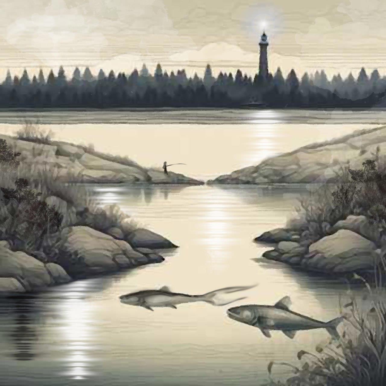 Он рыбачил на тихой реке,