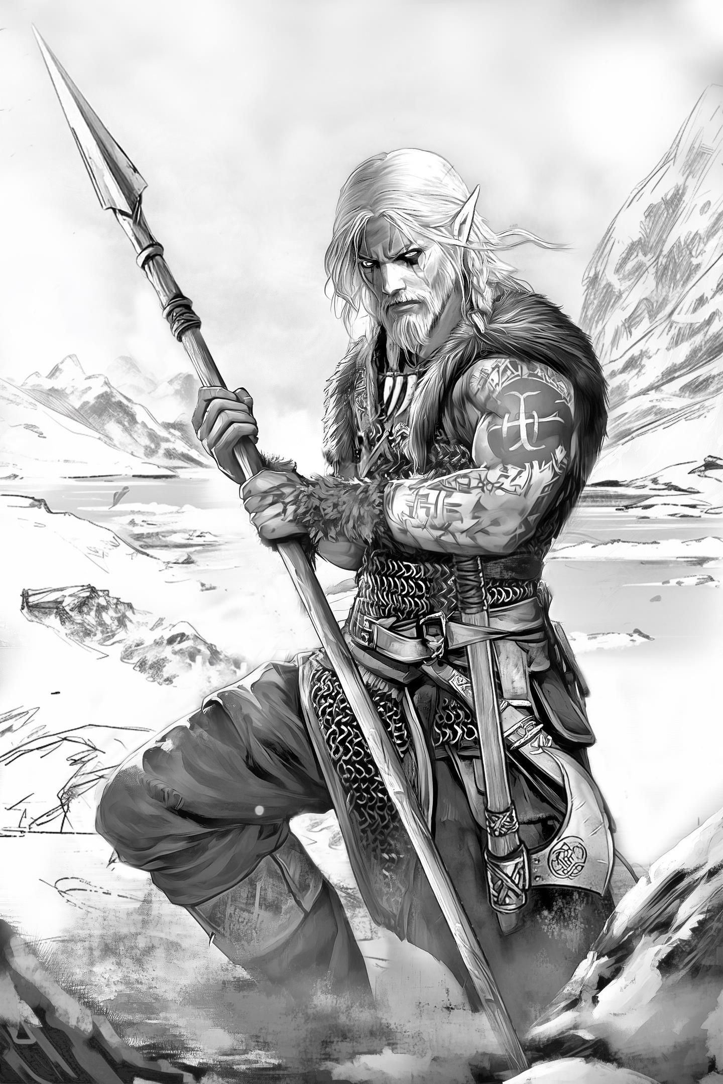 Спешу сообщить, что в понедельник начинаю выкладку новой книги под названием «Полуварвар», обложку которой вы тут видете в чёрно-белом варианте. Давным-давно мы с товарищами играли в ДнДэшку, где мои персонажем был наполовину эльф, наполовину варвар, но я ушёл в море и добить игру не удалось. Однако концепция мне понравилась, так что давно пора было перенести её «на бумагу», пусть и в другом мире с другими навыками. Про техномага будет как-нибудь потом, если вообще будет. А сейчас про мага-практика с уникальным умением выдачи люлей в ближнем бою, надеюсь вам понравится:)