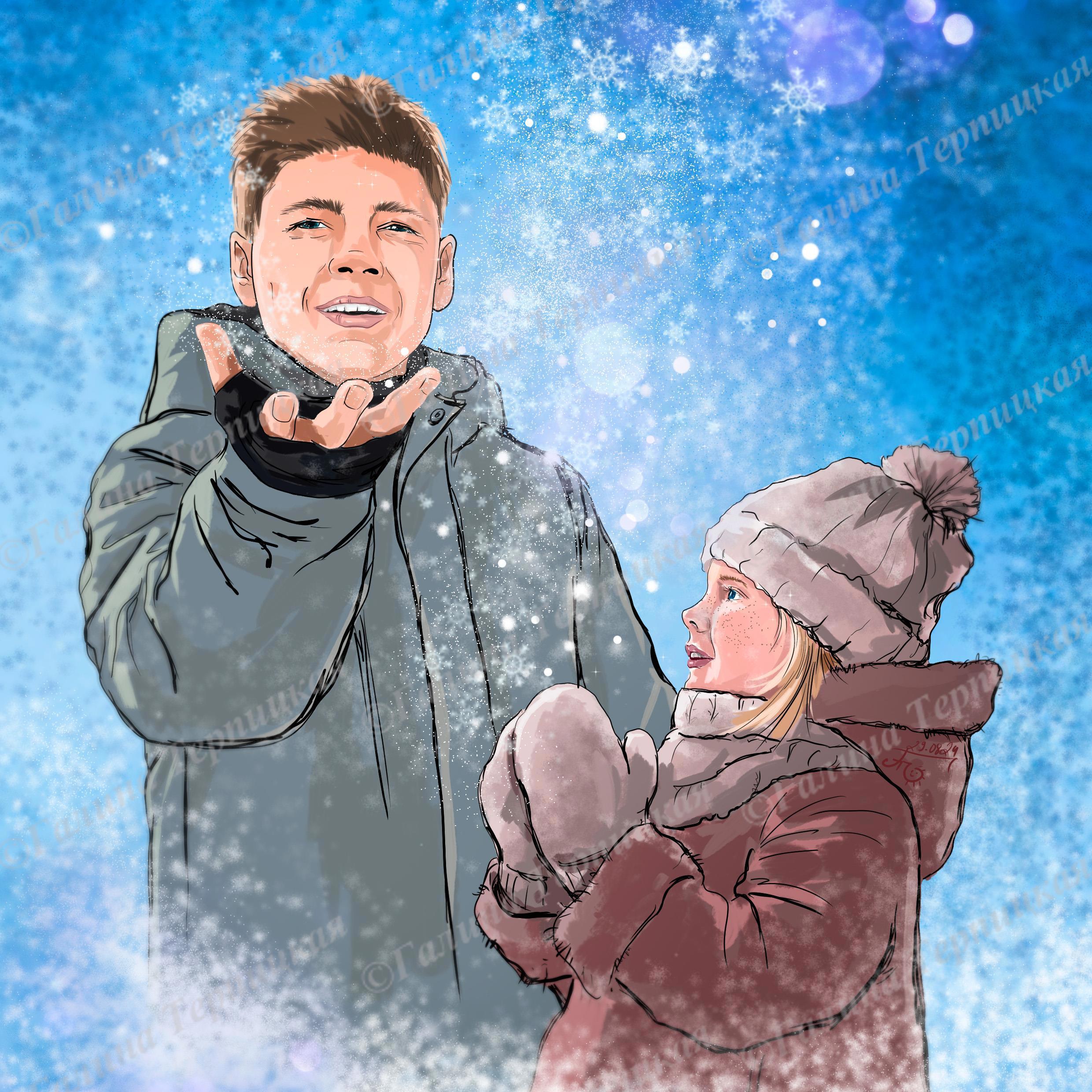 Одна из таких историй — "Мелодия снежинок" Ольги Суриной. Это тот случай, когда вдохновляешься прочитанным и рисунок сам просится на бумагу. Точнее на графический планшет)))