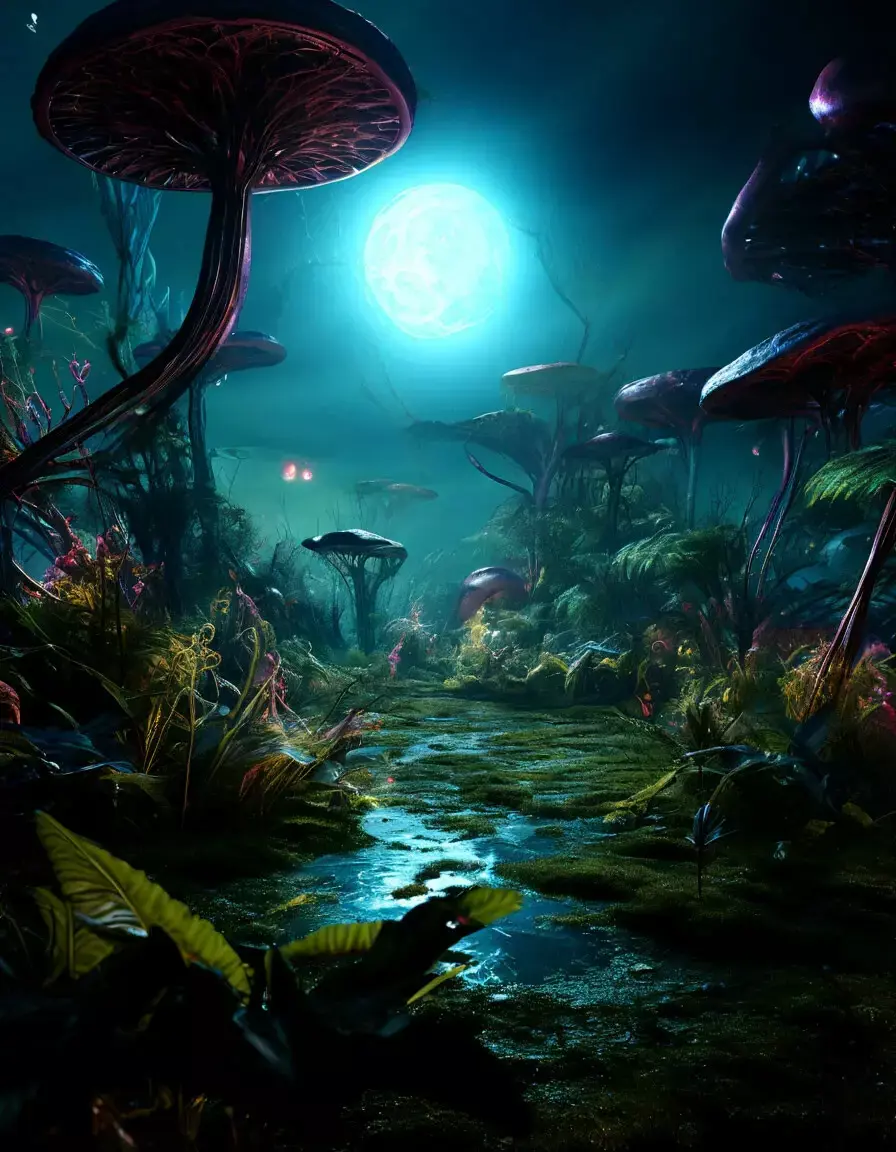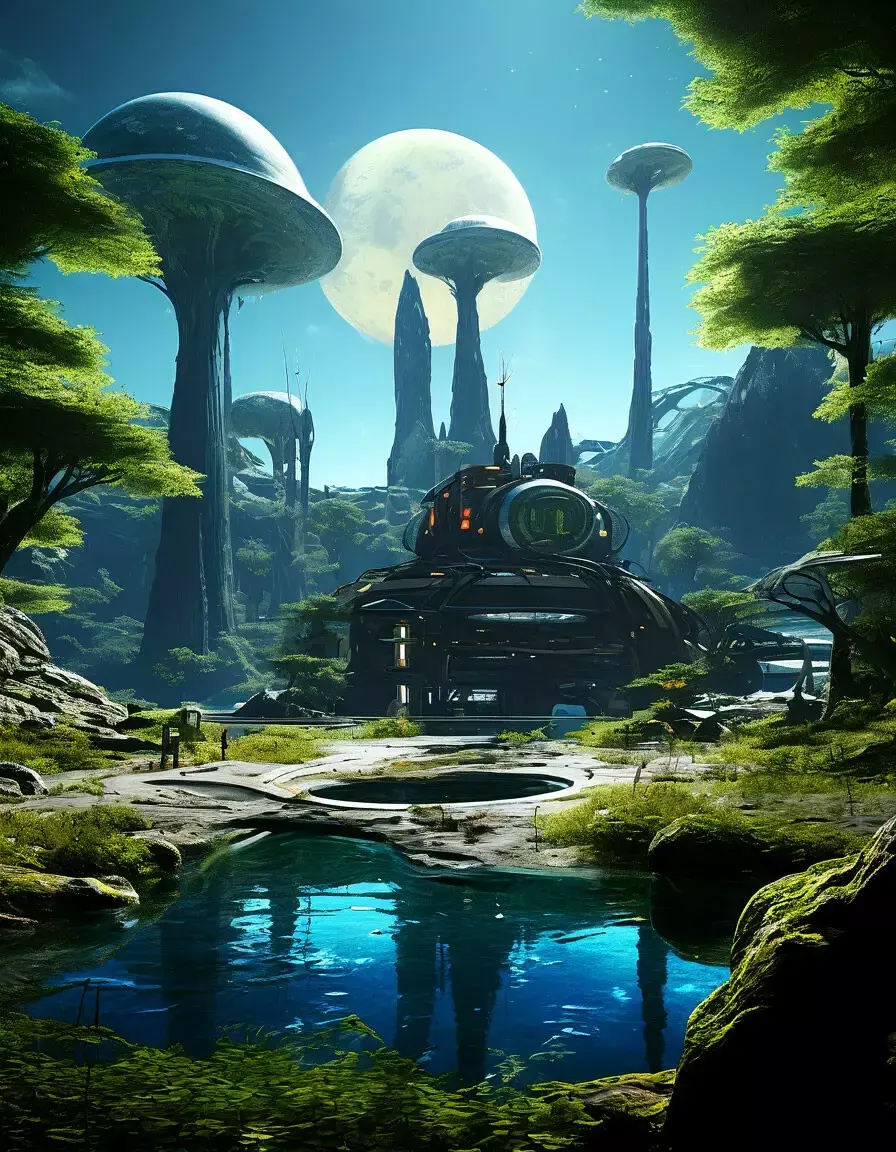 Пока писал новую главу, игрался с нейросетью на тему того, как может выглядеть природа чужой планеты. Мое описание сетка так и не нарисовала, а жаль...
