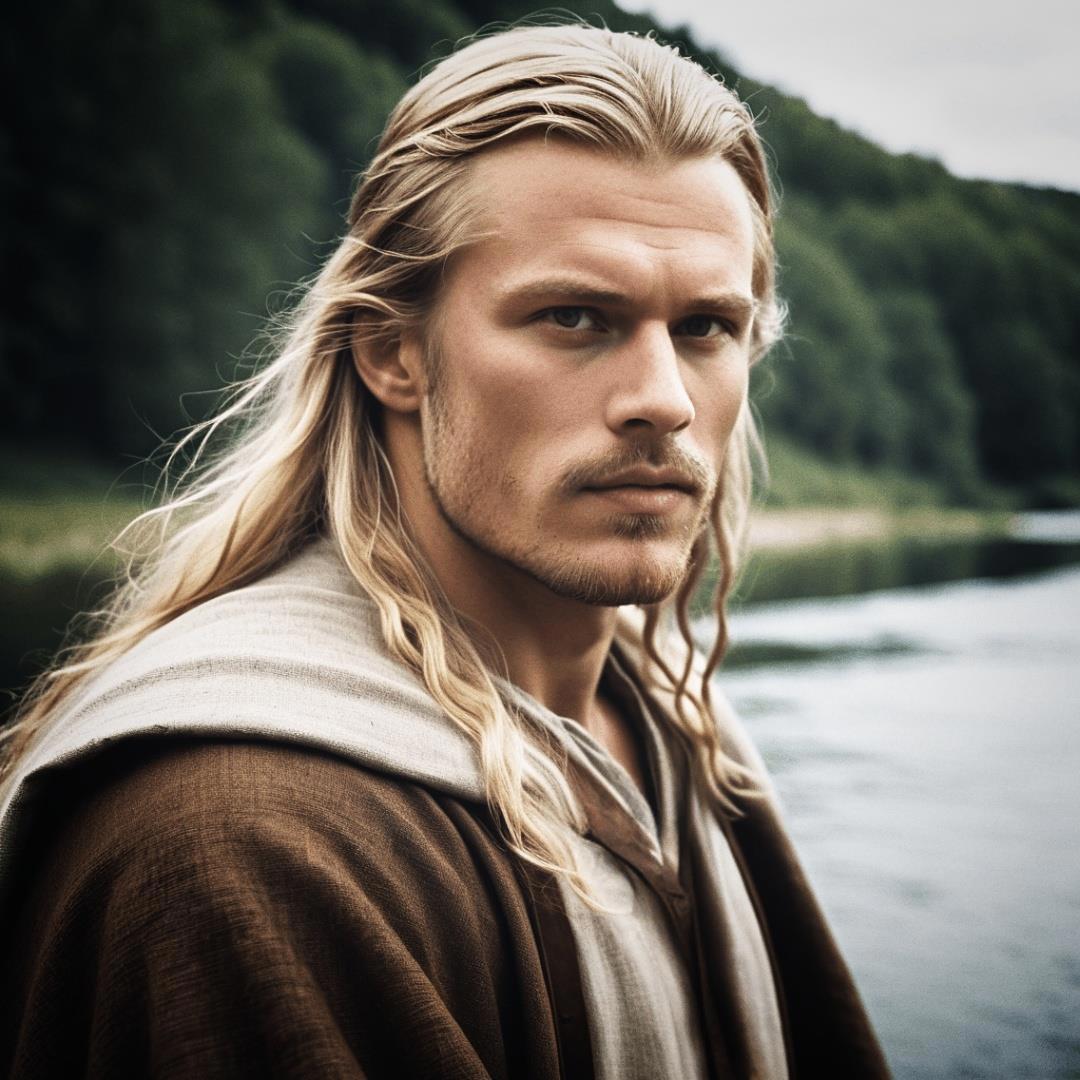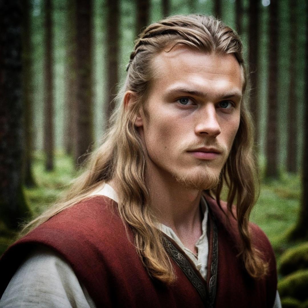 Линия 3. Это не совсем линия. Это больше намеки на нее и отсылки к ней. Место действия: Раннесредневековая Норвегия, время действия: середина IX в. Собственно, здесь будет только об одном герое, Альрике конунге, главном герое всего цикла. Альрик — правнук Бьёрна и Снефрид. Тоже видение Исфрид (молодой Альрик, еще не конунг):