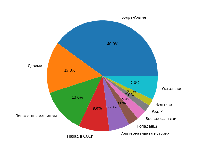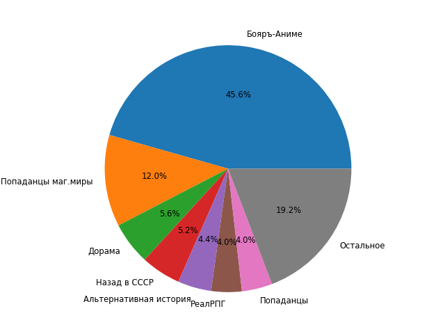 Информация собирается исходя из поисковой выдачи АТ, отсортированной по популярности за месяц: https://author.today/work/genre/all?rp=month&eg=-&fnd=false&page=1 (все фильтры были специально отключены).