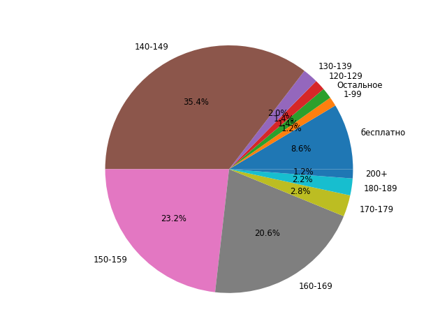 Довольно заметно повышение цен: книг в диапазоне 140 — 149 рублей резко убавилось, а в диапазоне 150 — 169 рублей стало больше.