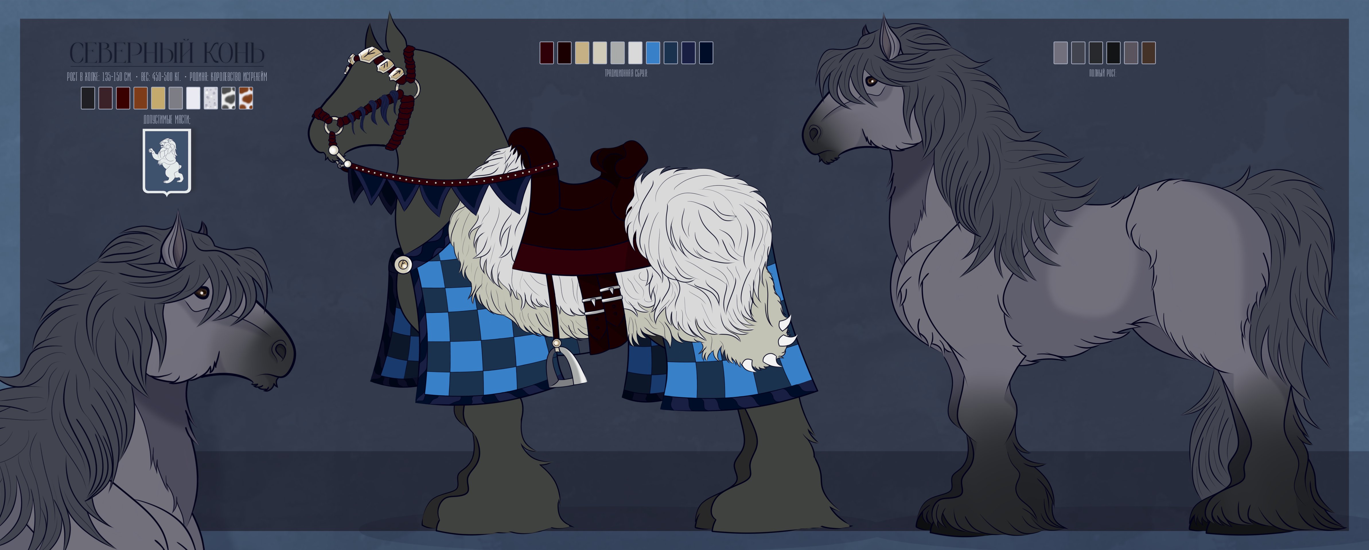 Автор: EllardСЕВЕРНЫЙ КОНЬ – близкий родич дейнской лошади и одна из самых выносливых пород Элларда. Северные кони настолько неприхотливы, что сумели покорить самый север Вольных Земель и без помощи людей. Если дейнская лошадь помогала строить Северную империю, то дейнхарская помогала ее разрушать вольнодумцам из рода Вольхов.