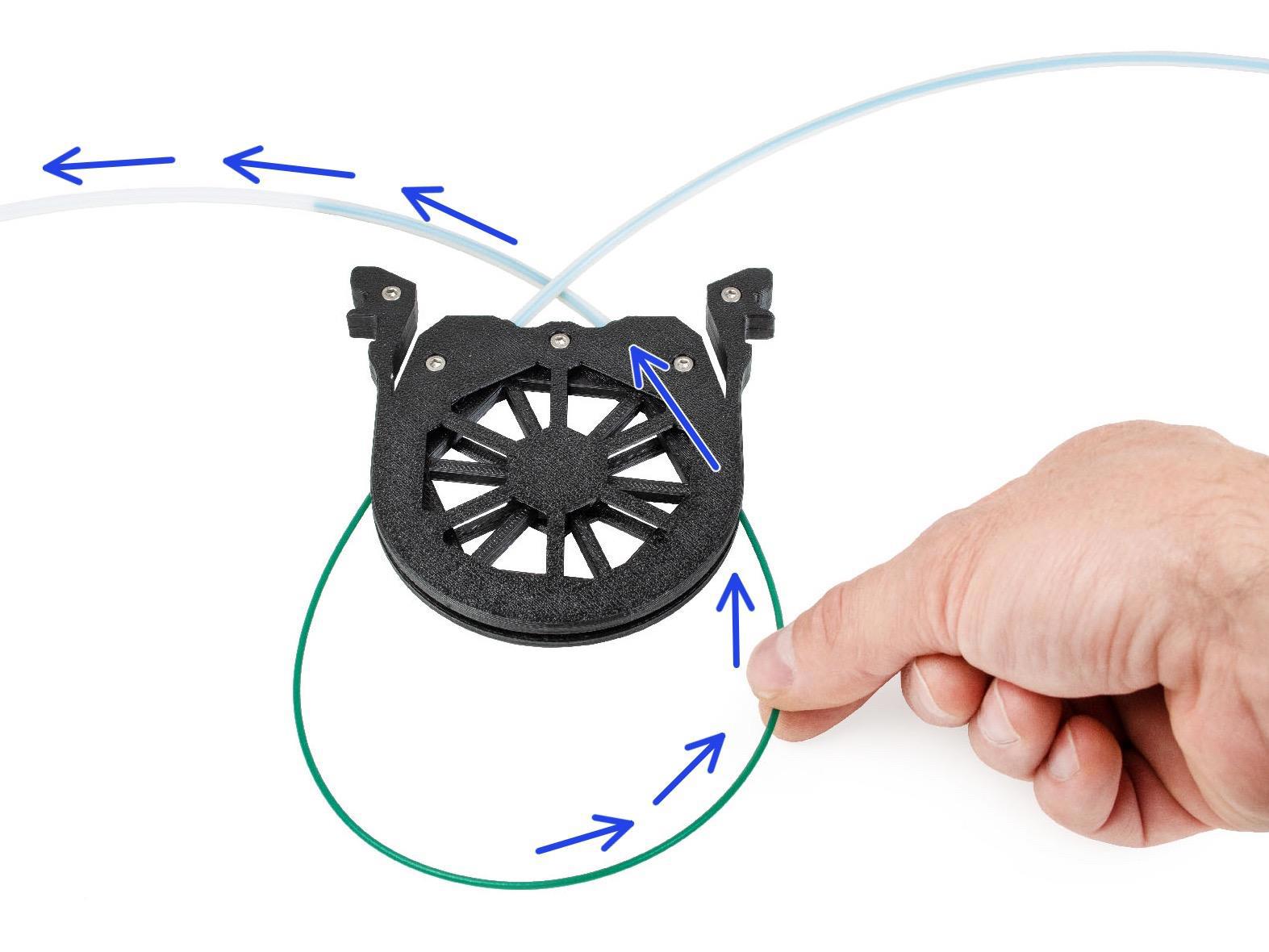 Вокруг которой филамент надо обмотать и запихнуть в другую тефлоновую трубку, ведущую от буфера к собственно MMU3.