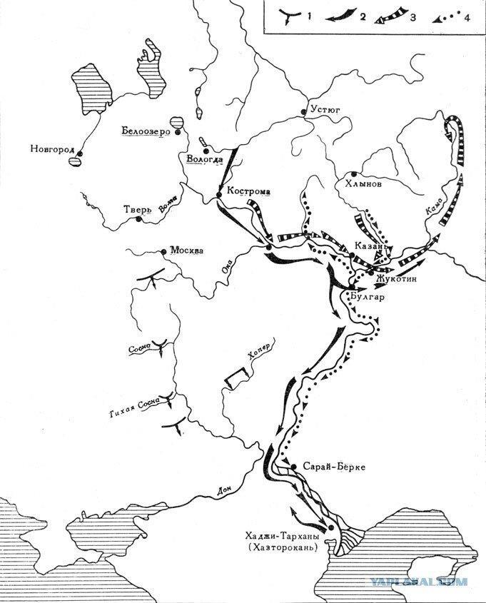 Походы ушкуйников на Волгу - конечно, весьма схематично: