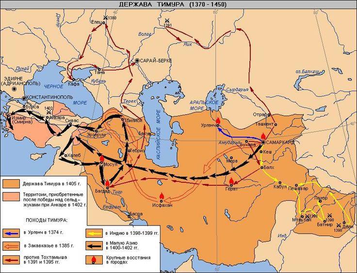 Ну и карта державы Тимура (Туран) на фоне войны с Золотой Ордой Тохтамыша. Включая поход Тамерлана на Елец: