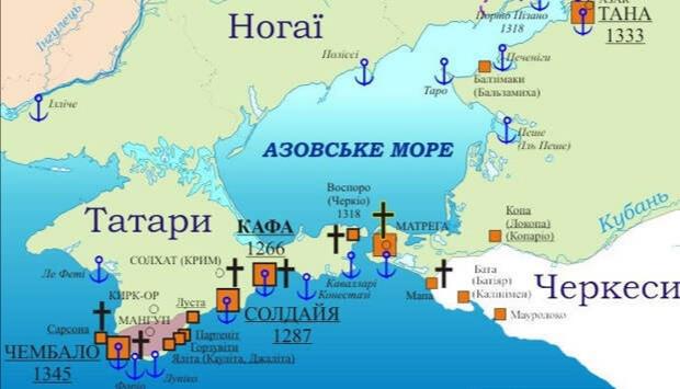 Хлынов наверху. Но это у нас Волжские походы. Понятное дело, что в реальности ушкуйники в генуэзскую Газарию не ходили. А вот, кстати, и её карта.