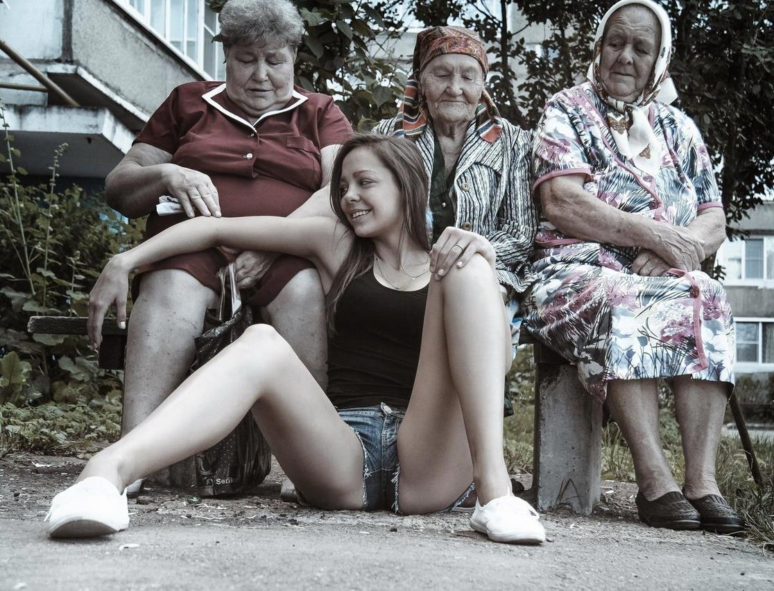 Взгляд пенсионерки впился в аппетитные ягодицы девушки, заходящей в подъезд.
