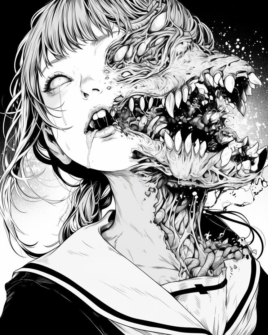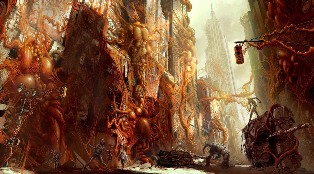 Бесконечная внутренняя тьма выплёскивается из меня на город; чёрный поток втекает в модельное агенство: демоны — насилуют визжащих красоток, пожирают заживо; мерзкое щупальце-многоножка заползает в детский садик: касание смертельно — некоторых малышей разрывает на части, другие сами становятся маленькими щупальцами-многоножками; тёмная волна захлёстывает торговый центр… а бесконечная внутренняя тьма всё продолжает выплёскиваться…