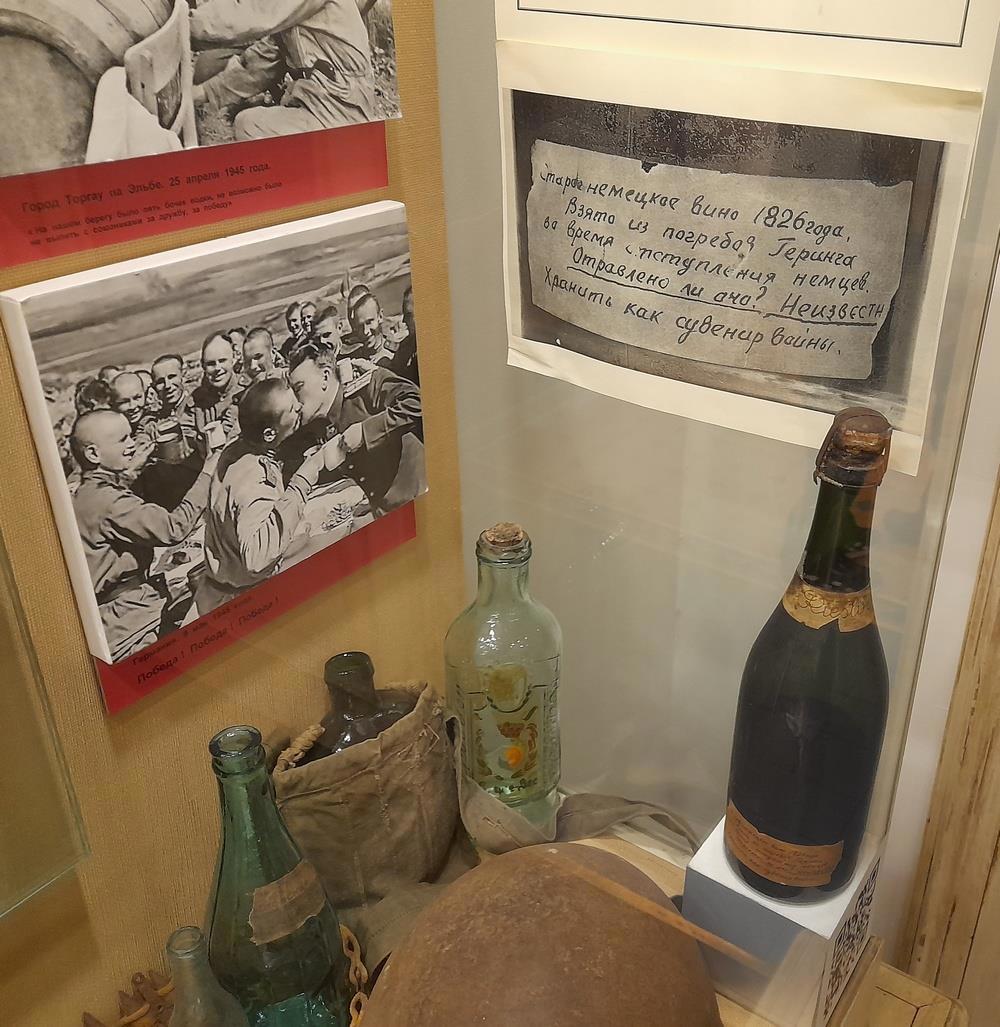 Старая бутыль. На ней наклейка "Старое немецкое вино 1826 года. Взято из погребов Геринга во время отступления немцев. Отравлено ли оно? Неизвестно. Хранить как сувенир войны".
