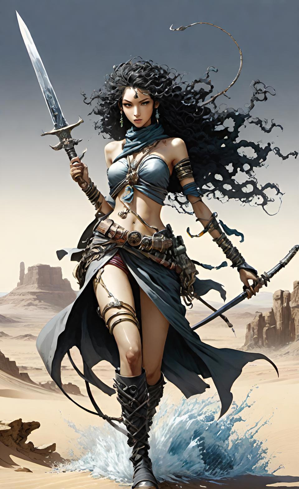 10) Мне нравится, как нейронка изобразила здесь волосы. А ещё, это самая динамичная поза из всех, что у меня получились сегодня.