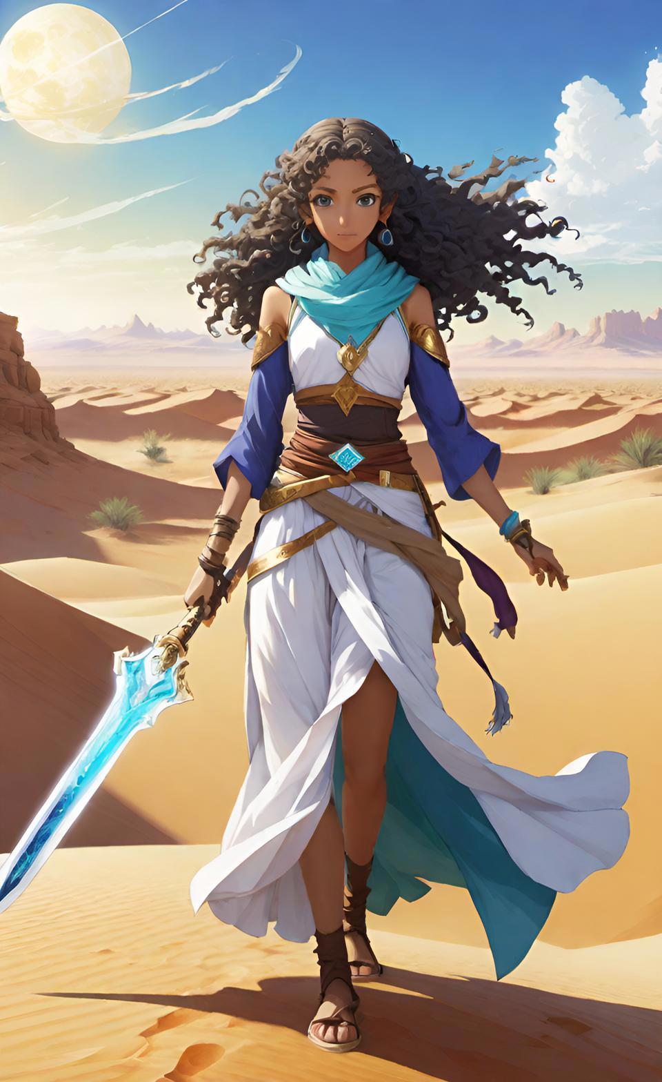 Однако, в ту звёздную ночь через бескрайние пески двигалось кое-что ещё. На ветру бойко хлопали шаровары и шелестела цветастая накидка. Большие серые глаза вглядывались в открывшийся перед ней простор, а её острый носик вдыхал прохладный воздух ночной пустыни.