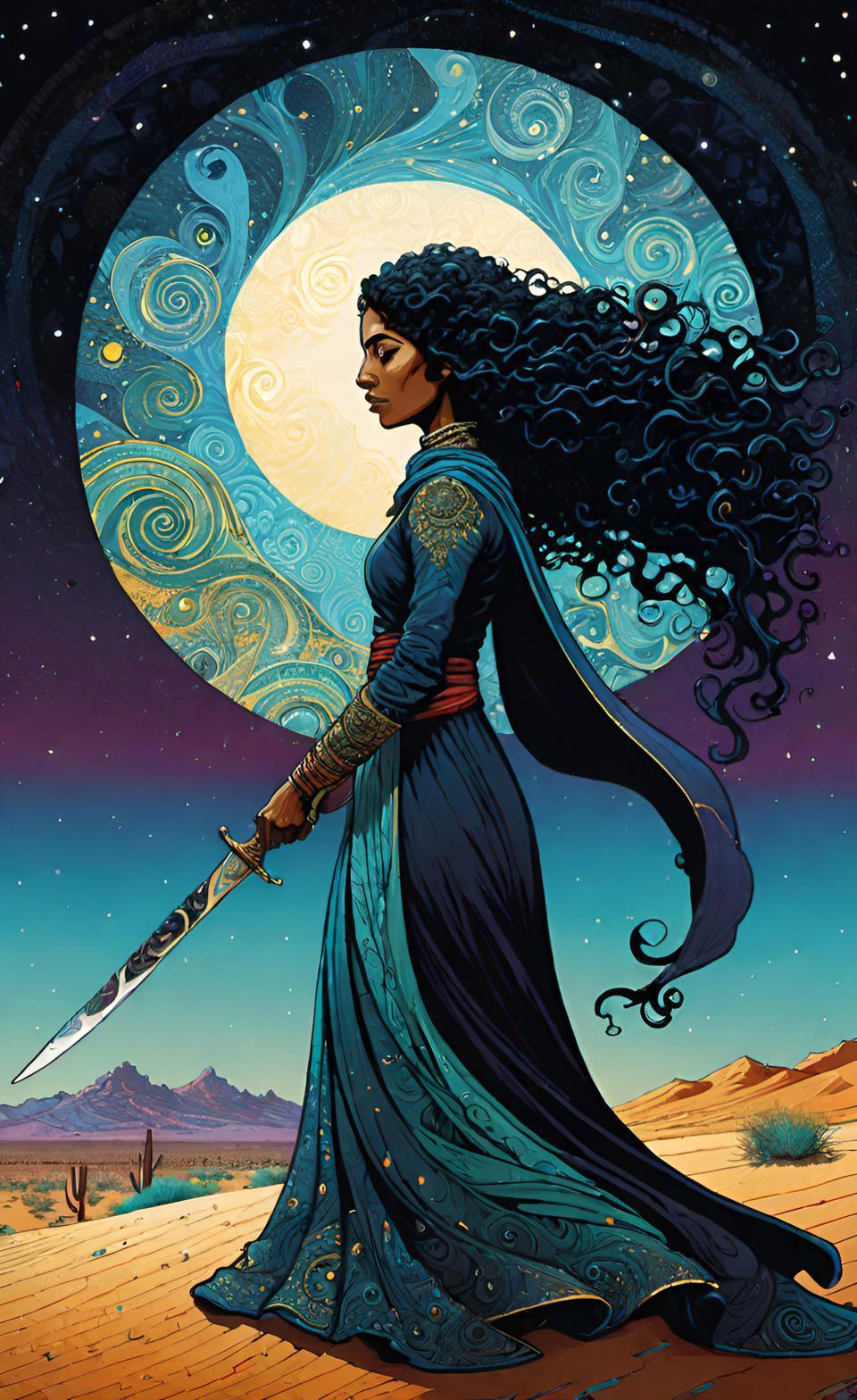 Ведя осла под узды, Рогнеда поднялась на вершину очередной дюны, стянула в тугой хвост сползшие на глаза кудри и огляделась. Ночное небо пестрило яркими, но холодными звёздами, лишь изредка скрытыми за немногочисленными облаками. Вокруг до самого горизонта протянулись пески. Волнами они вздымались и опускались, словно открытое море. Изредка, между барханами выделялись кустики полыни или кривые стволы саксаулов, но даже им не удавалось разбавить однообразный пейзаж.